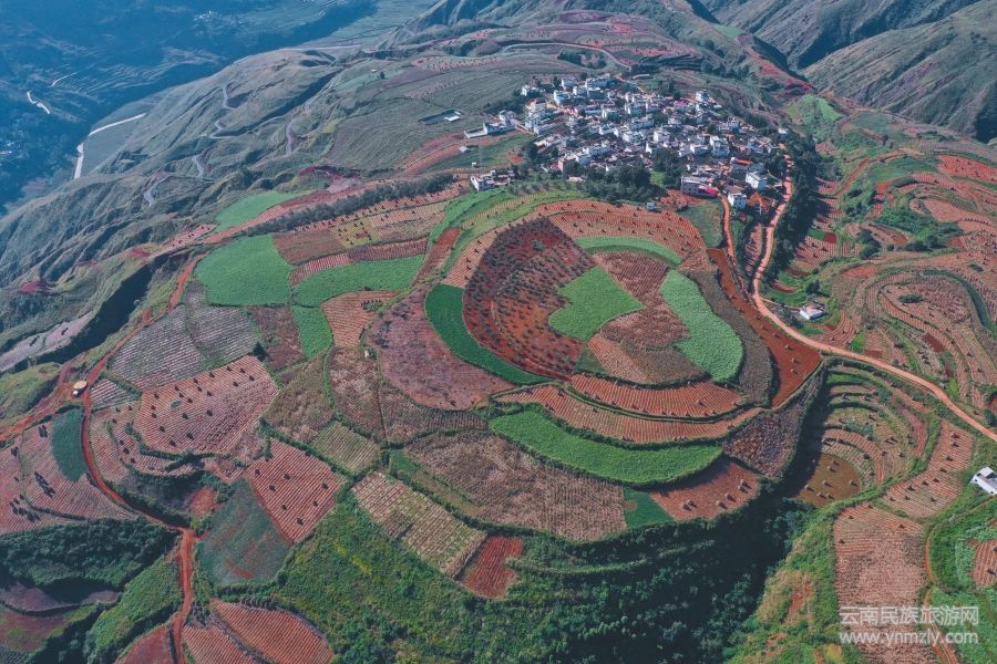 紅土地景區(qū)隸屬東川區(qū)紅土地鎮(zhèn),距昆明市160公里,距東川城區(qū)40公里,距轎子山景區(qū)45公里,與轎子山景區(qū)形成環(huán)線,是云南紅土高原上最集中、最典型、最具特色的紅土地,薈萃云南紅土高原最迷人的色彩、線條及光影,是世界上最有特色的紅土高原景觀, 被譽(yù)為“大地刺繡的精品,農(nóng)耕文化的杰作”和“上帝遺忘在人間調(diào)色板”。