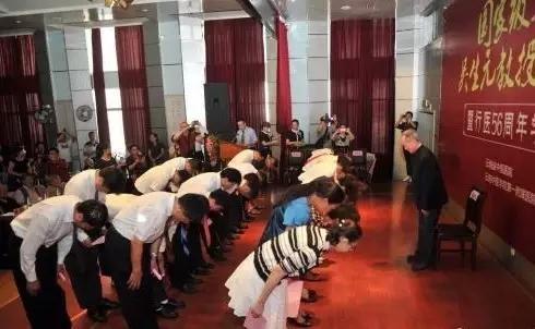 當(dāng)日上午9時(shí)許,出席“名中醫(yī)吳生元教授經(jīng)驗(yàn)傳承暨行醫(yī)56周年學(xué)術(shù)研討會(huì)”的眾多嘉賓,共同見(jiàn)證了中醫(yī)傳統(tǒng)拜師儀式。