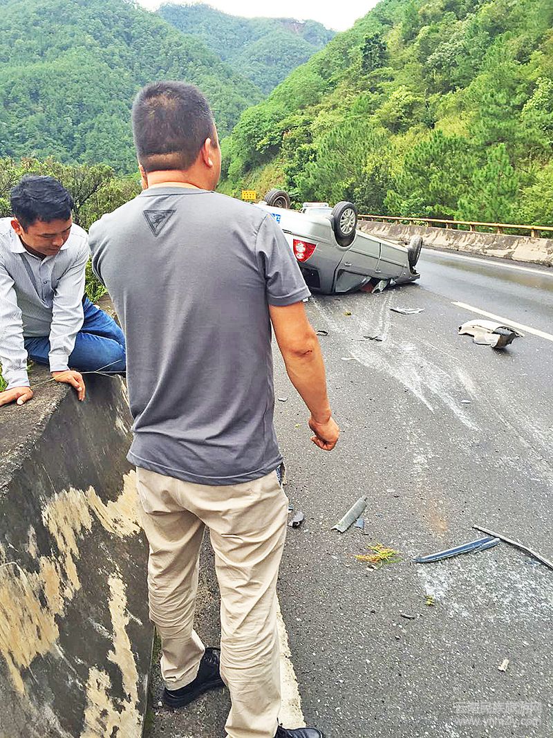 “因?yàn)樵搮^(qū)間限速,所以當(dāng)時(shí)我的車速不快。行駛間,聽到后面?zhèn)鱽?lái)急剎車和車輛的碰撞聲,從后視鏡里看到有輛車出事了。我立即將車停在路邊的應(yīng)急停車帶上,下來(lái)幫忙查看。”當(dāng)王院紅下車后,看到一輛灰色的轎車四輪朝天地橫在路中間,占去了三分之一的路面,車上的零部件散落了一地。