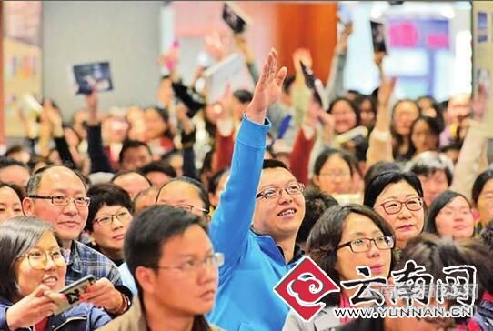 昨天下午1點(diǎn),白巖松又來到呈貢新區(qū)七彩云南新華書店,簽售新書《白說》。得知簽售消息,昆明市民尤其是呈貢的高校學(xué)生早早就將簽售現(xiàn)場圍得水泄不通。據(jù)書城工作人員介紹,甚至有學(xué)生天不亮就來書城排隊(duì)等著一見白巖松真容。簽售之前,眾多讀者手持《白說》等待,白巖松的出現(xiàn)更是引起了一陣騷動(dòng)。