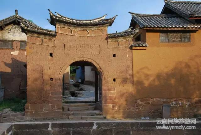 走過玉津橋,沿著古道行走約100米,一個用土坯做成的寨門就出現(xiàn)在眼前,進了此門就是集市,寨門用土坯砌成,雖顯得有點寒酸、土氣,但卻向世人展示了茶馬古道集市的城門樣子―僅容兩匹馬同時通過的土坯墻門。