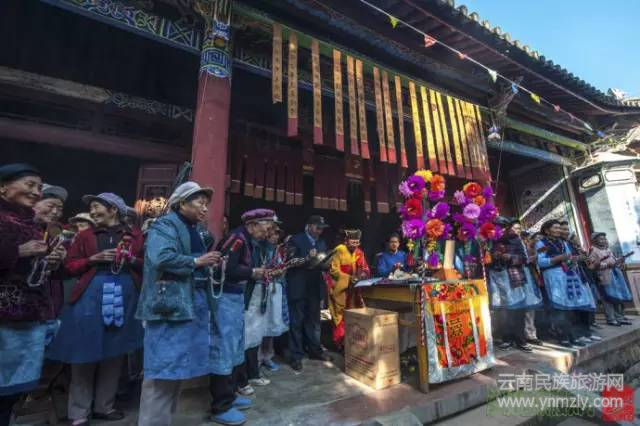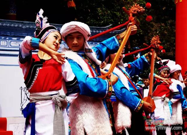 每逢民族節(jié)日,全鎮(zhèn)白族兒女各自身著節(jié)日盛裝,彈著龍頭三弦,齊聚四方街,在戲臺上載歌載舞,四方街上人頭涌動,沉浸在一片歡樂的海洋中。