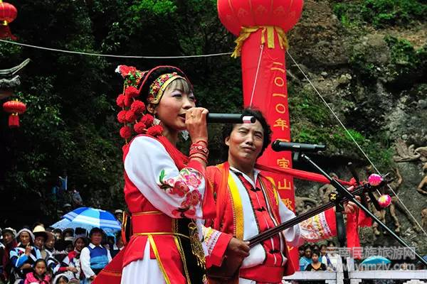 農(nóng)歷七月二十七日至八月初一日的石寶山歌會久盛不衰,來自各地的青年男女衣著節(jié)日盛裝,在石寶山彈三弦、唱情歌,盡情歡樂。如果可以體會一次這種盛會,感受一次這種民族風情,該是怎樣的一件幸事啊。