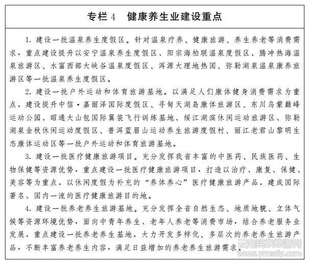 順應(yīng)人們?cè)絹?lái)越注重身心健康、養(yǎng)生養(yǎng)老等消費(fèi)需求,有效利用全省地?zé)?、溫泉密集的?yōu)勢(shì),開發(fā)建設(shè)以溫泉養(yǎng)生、康復(fù)療養(yǎng)為重點(diǎn),理念創(chuàng)新、設(shè)計(jì)新穎、設(shè)施配套的溫泉養(yǎng)生度假產(chǎn)品。充分發(fā)揮全省獨(dú)特的高原體育訓(xùn)練、戶外運(yùn)動(dòng)和立體氣候環(huán)境等優(yōu)勢(shì),積極發(fā)展極限運(yùn)動(dòng)、定向運(yùn)動(dòng)、拓展訓(xùn)練、翼裝飛行、滑翔傘、熱氣球、江河漂流等為重點(diǎn)的戶外運(yùn)動(dòng)產(chǎn)品和時(shí)尚體育旅游產(chǎn)品。充分發(fā)揮全省森林資源豐富、分布廣泛的優(yōu)勢(shì),大力開發(fā)以“天然氧吧”“森林康體浴”等為特色的森林康復(fù)療養(yǎng)產(chǎn)品。充分發(fā)掘全省豐富的中醫(yī)藥、民族醫(yī)藥、生物保健特色資源和知名醫(yī)院等優(yōu)勢(shì),啟動(dòng)建設(shè)一批養(yǎng)老養(yǎng)生、醫(yī)療保健旅游項(xiàng)目,開發(fā)養(yǎng)老養(yǎng)生旅游、醫(yī)療健康旅游、美容保健旅游等新產(chǎn)品,努力把健康養(yǎng)生旅游培育成為我省旅游文化產(chǎn)業(yè)的新品牌和新亮點(diǎn)。