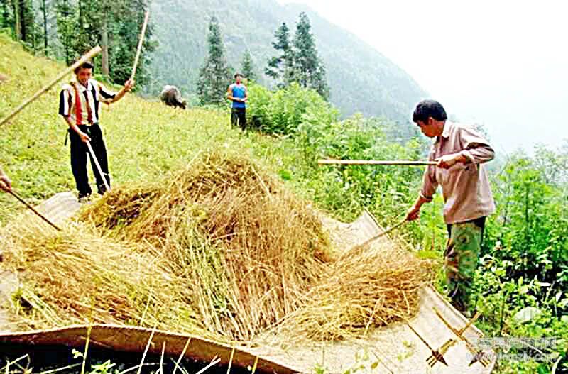 作為烏蒙山區(qū)的宣威人來說,苦蕎粑粑最讓人們記憶猶新,對(duì)于農(nóng)村的苦命孩子,它雖然不像洋芋一樣一日三餐與我們相伴,但出門在外,下地勞作,遠(yuǎn)門上學(xué),它通常是我們的美味餉午和路上盤纏。蕎麥,它對(duì)土壤要求不高,喜涼,生長(zhǎng)周期短,當(dāng)它遇上洋芋,蘿卜的時(shí)候,卻是農(nóng)作物中的絕佳拍擋。適合洋芋生長(zhǎng)的烏蒙山區(qū),8月份收完洋芋,將合著磷肥的蕎麥白蘿卜籽撒在地表,用五齒釘鈀隨便抓蓋一下(蕎麥芽頂土力差,埋深了它出不了土),等待的就是10月份的收割,中途幾乎不用你照看打理。待收割完蕎麥,留下蘿卜苗,可長(zhǎng)到來年春耕,它又是當(dāng)?shù)匚桂B(yǎng)土豬的上好飼料。勤勞聰明的宣威人充分利用了它們哥三的生長(zhǎng)周期和特點(diǎn),大面積種植并充分提高了土地的利用率。蕎麥這個(gè)“懶漢”莊稼,只要雨水充足,不遇上蟲災(zāi),吸收點(diǎn)洋芋生長(zhǎng)留下的余肥,豐收是注定的。它不像谷子,玉米等“高大上”的農(nóng)作物從初春的梨田鈀地,夏天的除草捉蟲,到深秋的擇時(shí)收獲那樣耗費(fèi)農(nóng)戶大量的時(shí)間、經(jīng)歷和心血?;蛟S是得來的簡(jiǎn)單,它在當(dāng)?shù)氐氖匙V上并不被放在首要的位置,通常是用作豬飼料居多。也許因?yàn)楫?dāng)時(shí)人們都不富裕,油水欠缺,缺乏油水滋潤(rùn)的胃腸并不太喜歡味苦涼寒的苦蕎,所以大部分時(shí)間把它送給了豬,這個(gè)宣威土豬也是悶頭享受,洋芋,蕎麥,大蘿卜,或許也是成就了宣威火腿,宣威小炒肉美味、美名的根本原因。