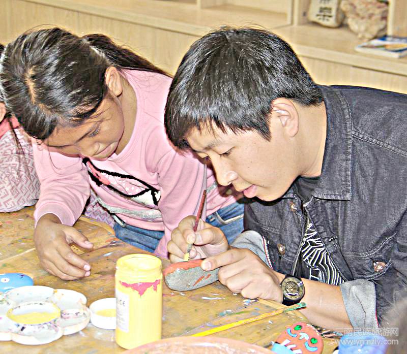 指導(dǎo)教師名叫包春雷,2012年畢業(yè)于云南藝術(shù)學(xué)院美術(shù)學(xué)師范專業(yè)。他告訴記者,是冷墩小學(xué)孩子們渴望知識(shí)改變命運(yùn)的眼神,讓他深感自已不能僅僅是完成好班上語(yǔ)文主科的教學(xué)任務(wù),還要發(fā)揮出自已的美術(shù)專業(yè)特長(zhǎng)。開(kāi)展學(xué)生課外“創(chuàng)意鵝卵石畫(huà)”活動(dòng)4年多來(lái),得到了學(xué)校和同事們的大力支持。學(xué)生開(kāi)展石畫(huà)用的筆和涂料都是學(xué)校免費(fèi)提供的。