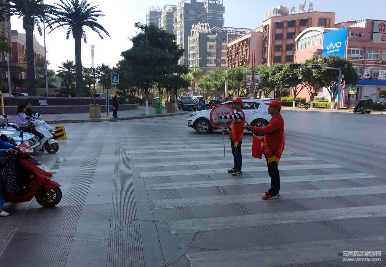 活動(dòng)開展以來,不管天晴還是下雨,每周一至周三的中、晚高峰時(shí)段,在市區(qū)天馬路與北京路交叉口、天馬路與文萃路交叉口、銀河路與興盛路交叉口、朝陽(yáng)路與錦華路交叉口、蒙自市第二小學(xué)(惠民校區(qū))、蒙自市第二小學(xué)(銀河校區(qū))、州級(jí)機(jī)關(guān)幼兒園、市機(jī)關(guān)幼兒園等8個(gè)主要路口和路段,都能見到身著紅色志愿者馬甲、頭戴紅色志愿者帽子,手持文明交通服務(wù)標(biāo)識(shí)的文明交通志愿者,與路口身著黃色反光背心的執(zhí)勤交警相互配合開展工作。