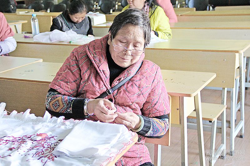 民族刺繡行業(yè)屬手工作業(yè),用工靈活,個(gè)體勞動(dòng)特征強(qiáng),因而十分適合鄉(xiāng)鎮(zhèn)婦女在照料老人和孩子的同時(shí),實(shí)現(xiàn)創(chuàng)業(yè)增收。蒙自市中華職教社聘請(qǐng)?jiān)颇鲜》俏镔|(zhì)文化遺產(chǎn)(刺繡傳承人)、云南民族文化研發(fā)中心副主任的廖力耕老師授課,對(duì)參加培訓(xùn)的農(nóng)村婦女進(jìn)行手把手指導(dǎo),一對(duì)一的培訓(xùn)指導(dǎo),并結(jié)合學(xué)員自身實(shí)際,進(jìn)行實(shí)踐操作,使她們?cè)诙唐趦?nèi)就學(xué)到了拱針繡針?lè)ā⑹^針繡針?lè)?、鏈子扣繡針?lè)ǖ仁喾N刺繡制作技藝。授課之前,廖老師拿出其他班學(xué)員的精美作品進(jìn)行展示,提起大家對(duì)刺繡的積極性和信心,然后對(duì)參訓(xùn)人員進(jìn)行現(xiàn)場(chǎng)操作示范,
