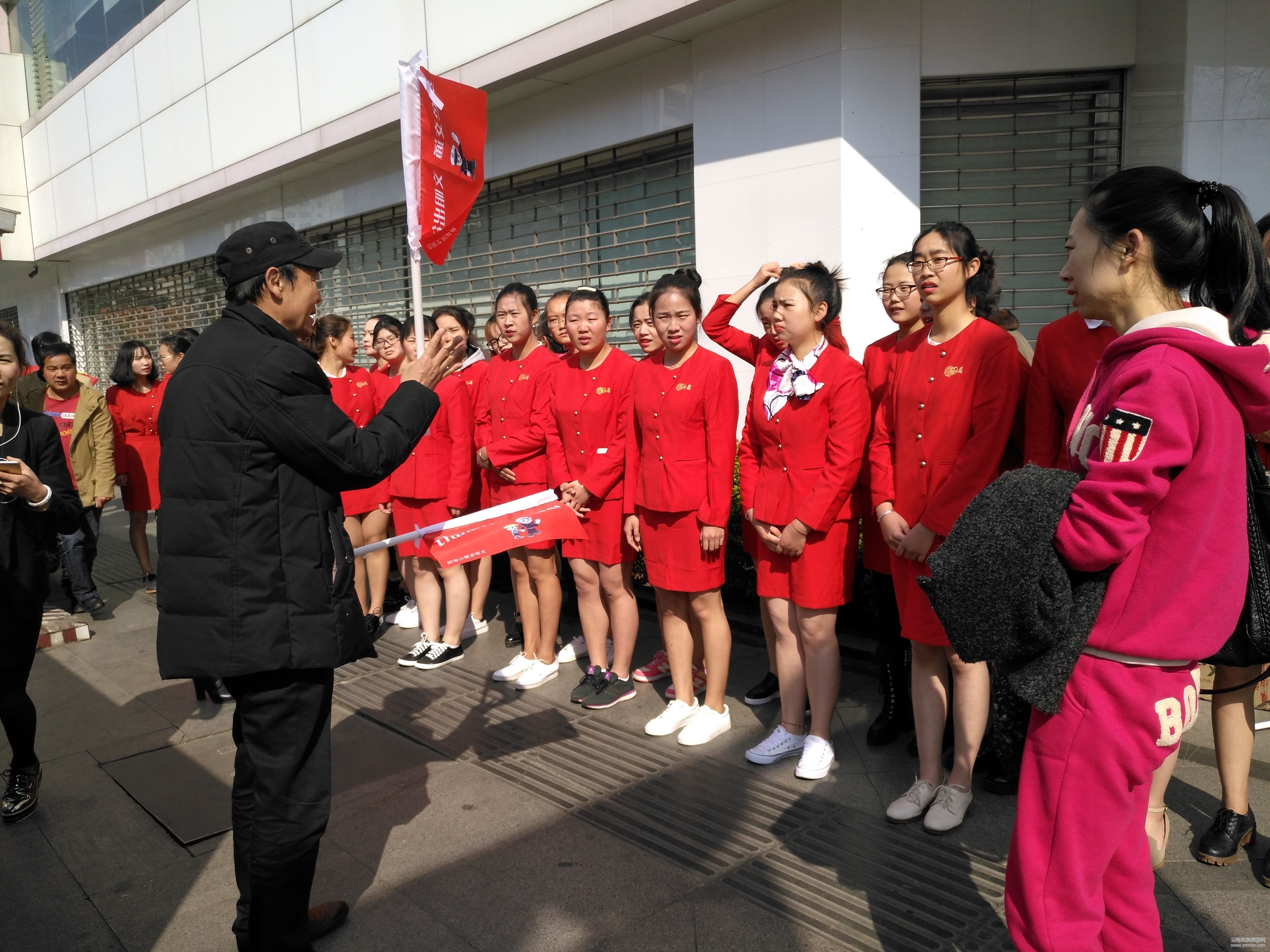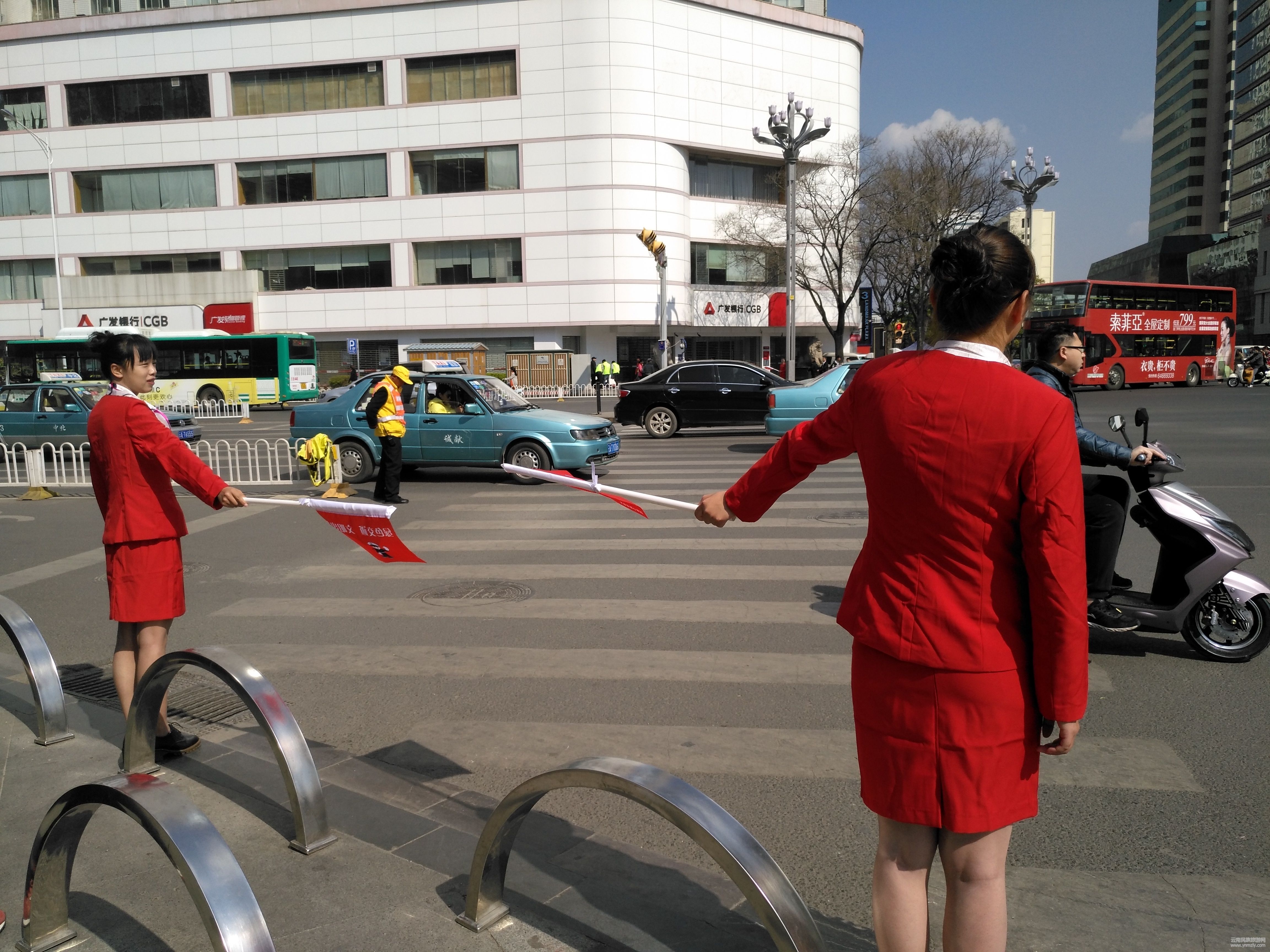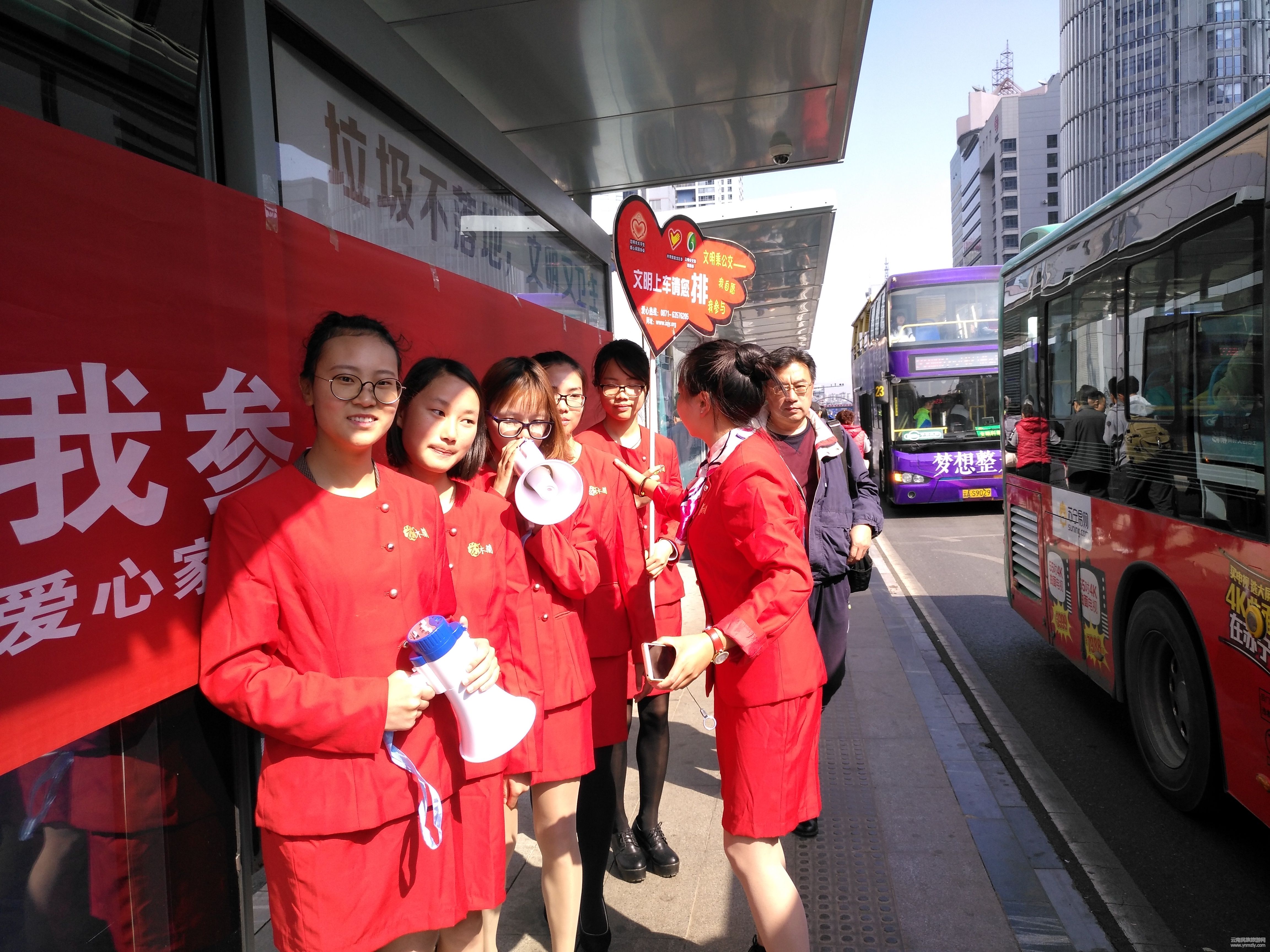 50名身穿紅色禮服的女大學生,分散到北京路的幾個路口,不斷提醒市民文明出行,上公交車宣傳互相禮讓、安全出行常識,得到了廣大市民和乘客的好評。