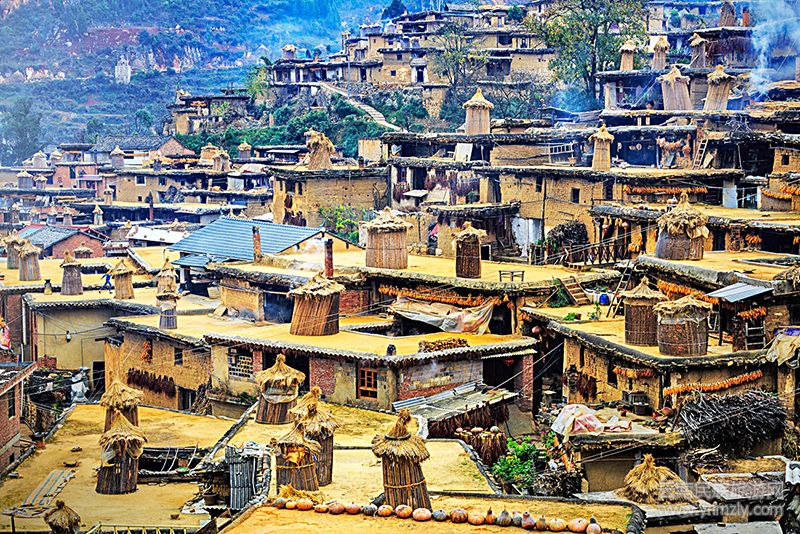 明成化九年(1473年),昂貴站在土司府的門檻前,久久地俯視著山坡下。他的視野里,是依山而建的1000多間土掌房,土掌房上下左右相連,村內(nèi)巷道交錯,整個村子就像一個立體迷宮。古村在選址與建設(shè)上符合中國傳統(tǒng)風(fēng)水學(xué),村寨景觀達到了人與自然共生共存的完美境界。