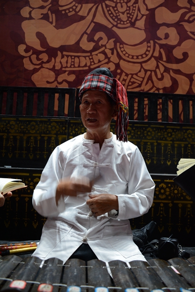 巖溫罕今年已經(jīng)74歲了,是古樂隊的核心人物,他彈奏的卡拉薩(鋼片琴),是傣族古樂中最重要的樂器之一。10多年前,他還是孟連縣文化館的館長,退休后,他醉心于古樂器,協(xié)助整理出了10多個當(dāng)年傣族王宮里最經(jīng)典的古樂舞節(jié)目。