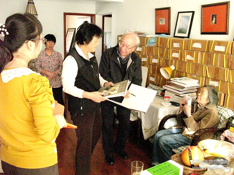 成敏老師(右二)受劉自鳴先生委托在清理作品。