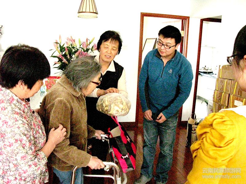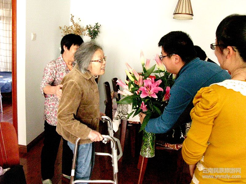 收藏者家人向劉自鳴先生獻(xiàn)上鮮花百合時,先生笑了,說:“謝謝!”