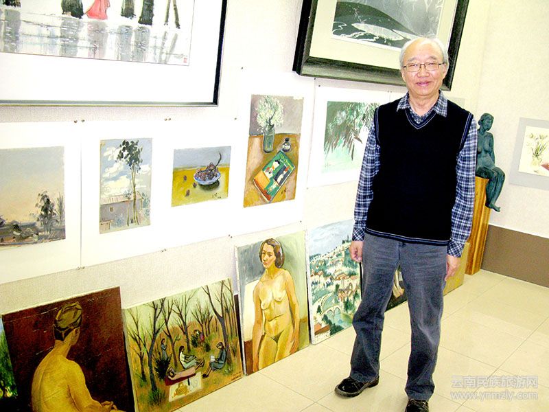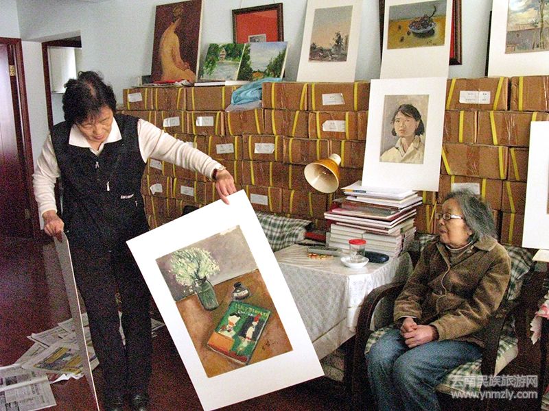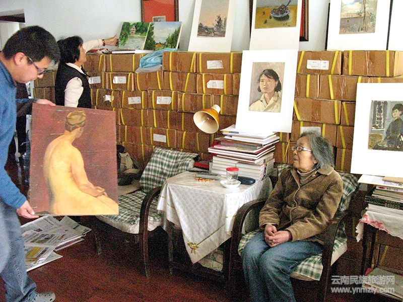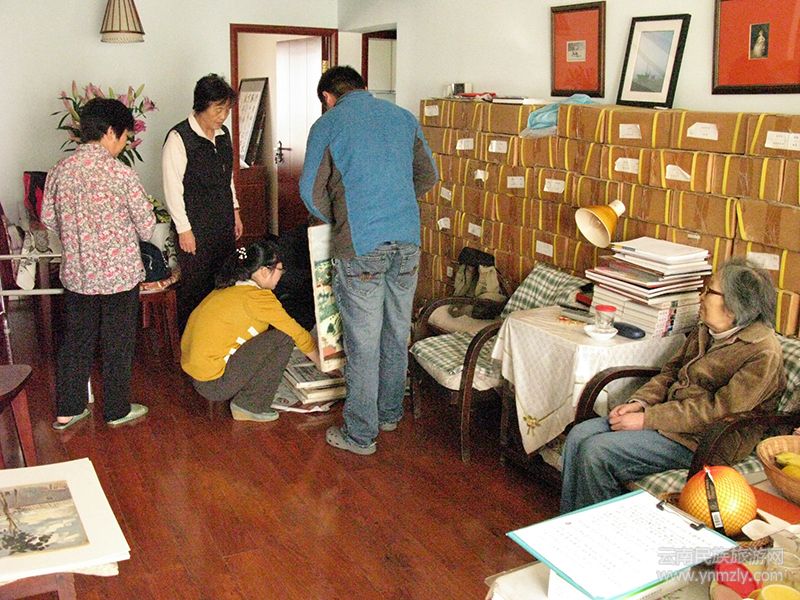 在昆明五一路118號(現(xiàn)云南畫院)忠翔先生工作室,觀看劉自鳴先生油畫作品。
