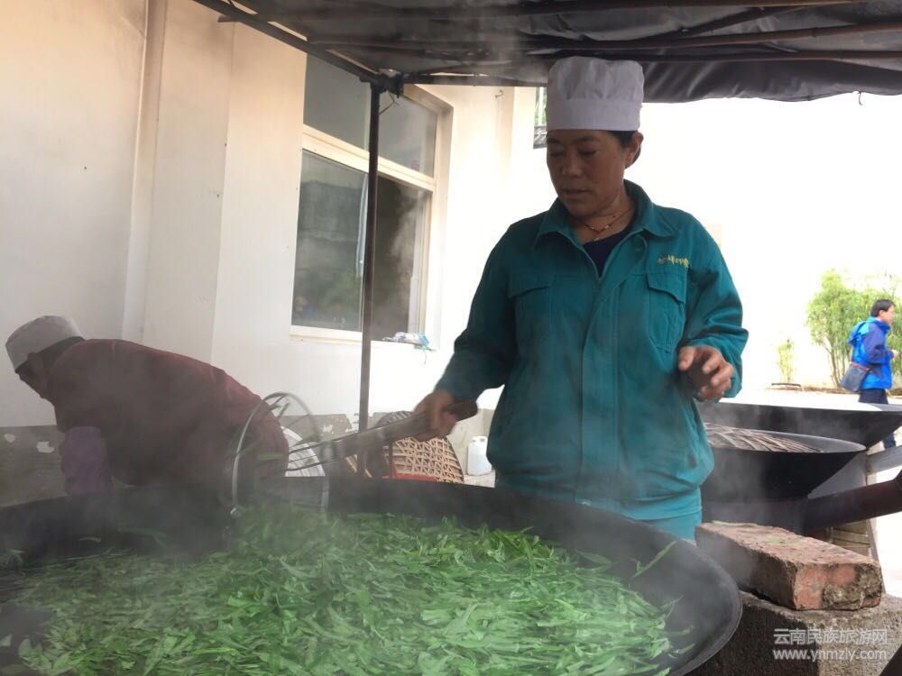 圖為農(nóng)業(yè)合作社員工對剛剛采摘的茶葉進(jìn)行加工?! ?/p>