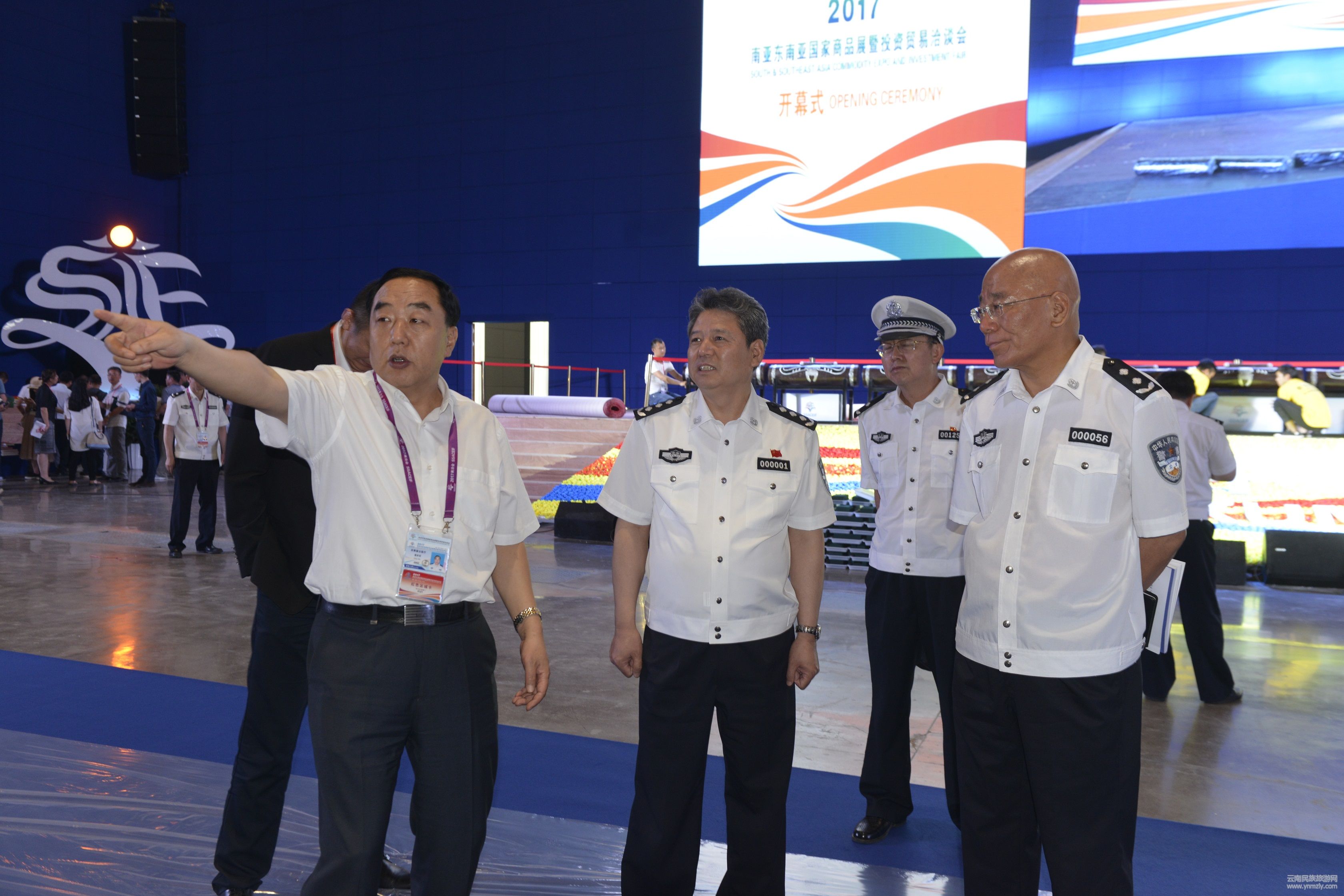 6月9日,2017年南亞東南亞國家商品展暨投資貿(mào)易洽談會召開前夕,昆明市公安局舉行現(xiàn)場安保實(shí)兵演練,省公安廳黨委書記、廳長任軍號出席演練活動并提出要求,對堅(jiān)守崗位的執(zhí)勤民警表示慰問。省公安廳黨委副書記、常務(wù)副廳長董家祿,省公安廳黨委委員、副廳長胡祖俊,省公安廳黨委委員、昆明市副市長、市公安局局長刀勇,省公安廳黨委委員、副廳長尹建江出席演練活動。