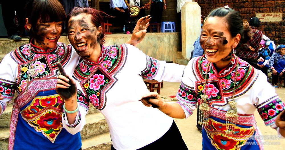 據(jù)悉,花臉節(jié)是云南省文山州丘北縣彝族獨(dú)有的傳統(tǒng)節(jié)日,因遠(yuǎn)古先民用鍋煙把臉部抹黑、驅(qū)魔除害而得名。“花臉節(jié)”已有1000多年的歷史,為普者黑一帶最著名的節(jié)日。經(jīng)過(guò)發(fā)展,“花臉節(jié)”已經(jīng)成為當(dāng)代彝族青年借抹花臉之機(jī)選擇意中人的狂歡活動(dòng)。