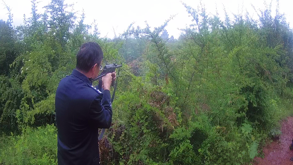 為穩(wěn)妥處置事件,避免其他意外事件的發(fā)生,民警對(duì)周邊群眾進(jìn)行疏散。天下著淅瀝細(xì)雨,樹高草深,莊稼密集。民警及隊(duì)員們的全身都濕透,腳上全是泥,在樹林中與牛展開逐角。民警找準(zhǔn)時(shí)機(jī),向牛開了幾槍,誰也沒想到,出現(xiàn)了驚險(xiǎn)的一幕,受傷的牛竟然向民警奔跑過來。