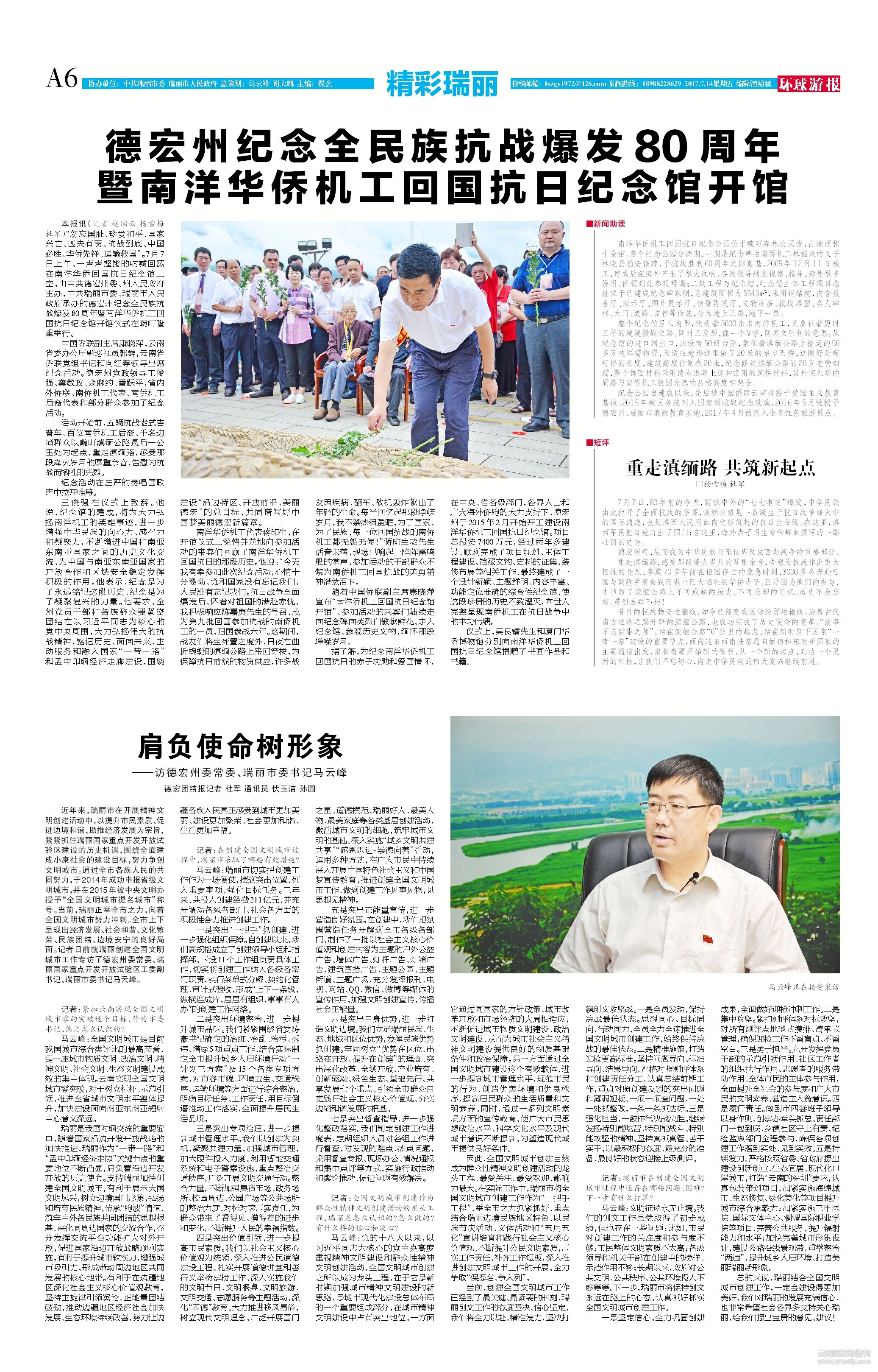 ● 德宏州紀念全民族抗戰(zhàn)爆發(fā)80周年 暨南洋華僑機工回國抗日紀念館開館 ( 2017-07-14 )