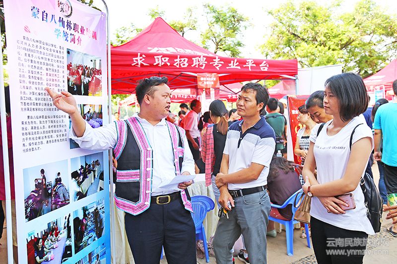 蒙自市人大常委會(huì)副主任、市總工會(huì)主席余光明主持儀式,副市長(zhǎng)趙漸強(qiáng)到會(huì)講話。州、市有關(guān)部門(mén)、鄉(xiāng)鎮(zhèn)、企業(yè)方負(fù)責(zé)人、社會(huì)各類(lèi)求職者參加招聘會(huì)。