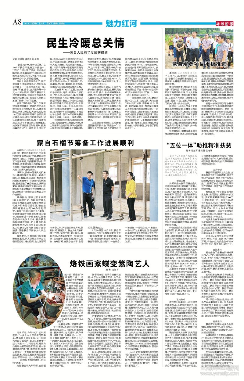 趁著這間歇,記者環(huán)視了一下工作室,不同形狀的紫陶陶坯體及成品映入了眼簾:有龍龜泡壺、喜鵲報鳴、龍鳳呈祥、葫蘆煙筒、梅花三弄、金蟬扶枝……加上多個被用烙鐵“畫”上畫的大小不一的葫蘆上的圖案:《茶馬古道》、《八駿圖》、《十八羅漢》、《蒙自海關》、《哥臚士洋行》《法國花園》、《碧色寨火車站》、《滇越鐵路》、《過橋米線的傳說》、《萬畝石榴園》、《清嘉慶皇帝的老師尹壯圖故居》、《西南聯(lián)大蒙自文法學院》、《蒙自南湖風景》等。讓人感覺好像走進了藏有寶藏的空間,那一件件作品,不由得驚嘆不已。