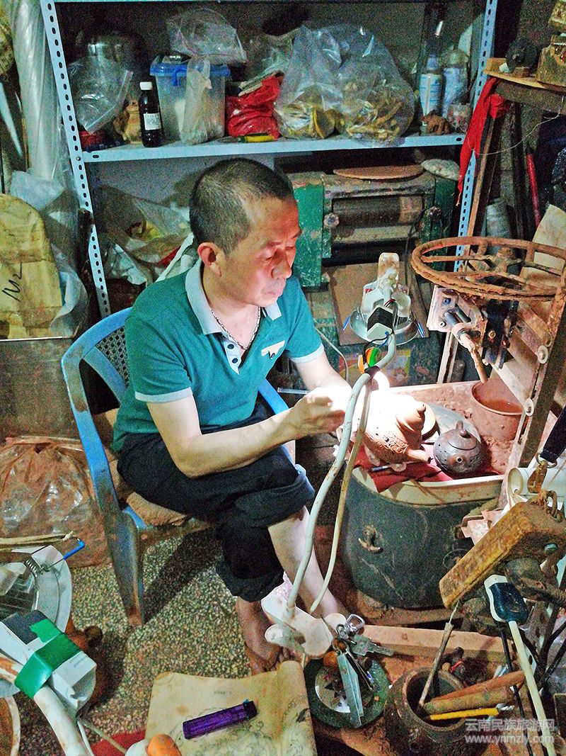 走進蒙自市大井早街,在街道的中段“橋香居”米線館的二樓上,記者看到了正在聚精會神用陶瓷器的傳統(tǒng)裝飾技法之一雕刻鏤空,在陶坯體上透雕花紋的老周。記者的到來他都不知道,看著那專注的樣子,記者偷偷拿出了相機對好焦,快速按下。相機“咔咔……”的響聲才把老周驚擾。面對鏡頭,老周連忙招呼記者,稍坐一會,他手上的活計馬上就好了。