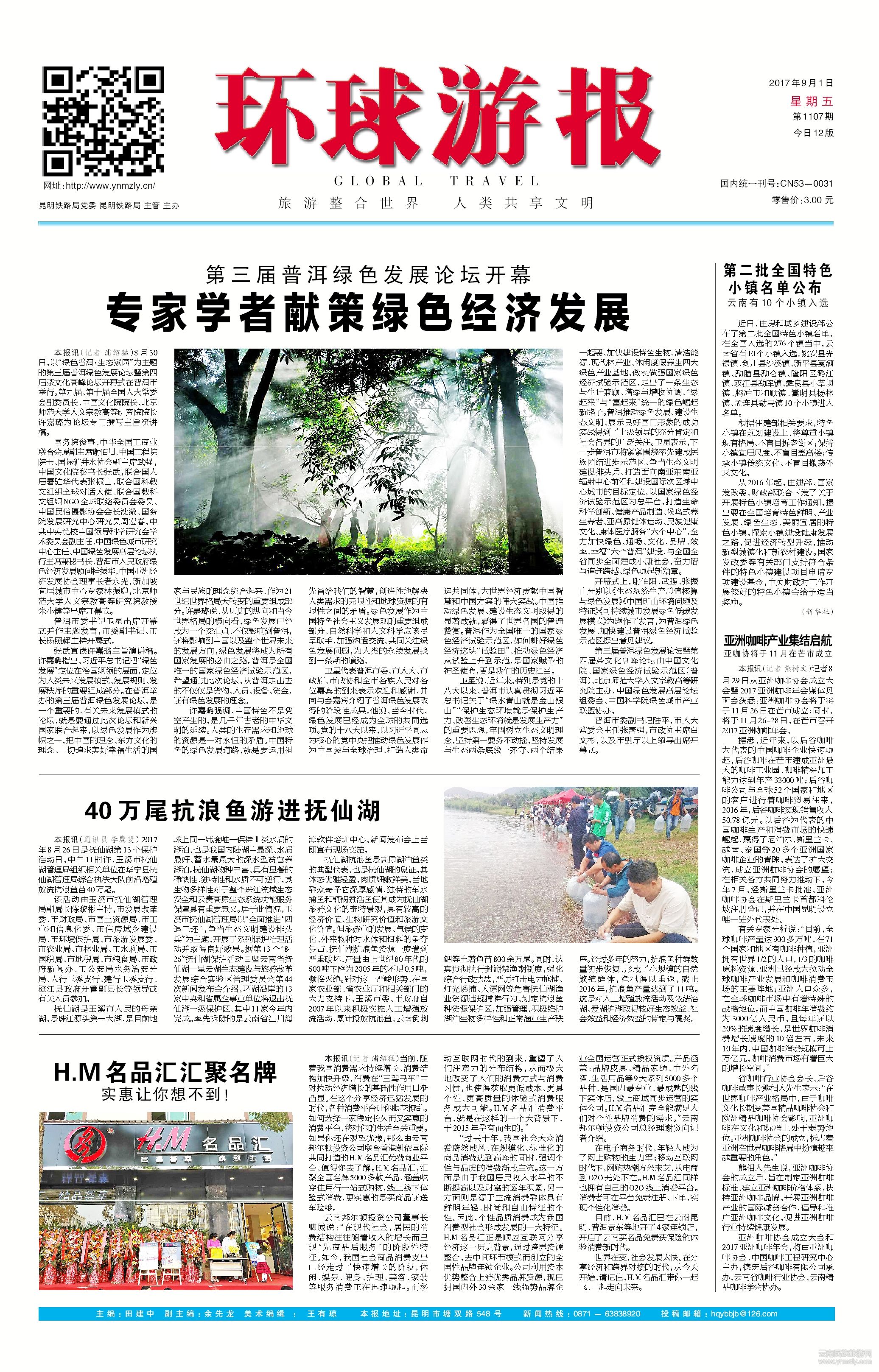 ● 第三屆普洱綠色發(fā)展論壇開幕 專家學者獻策綠色經濟發(fā)展 ( 2017-08-31 )