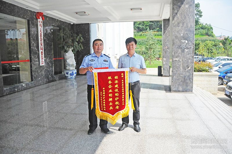7月31日,云南鍇升礦業(yè)有限公司攜印制有“經(jīng)濟(jì)建設(shè)的護(hù)航者,服務(wù)企業(yè)的排頭兵”字樣的錦旗和一封感謝信來到馬關(guān)縣公安局治安大隊(duì),對(duì)該大隊(duì)踐行落實(shí)“放管服”系列改革,為企業(yè)排優(yōu)解難、提效益、促發(fā)展表示感謝。