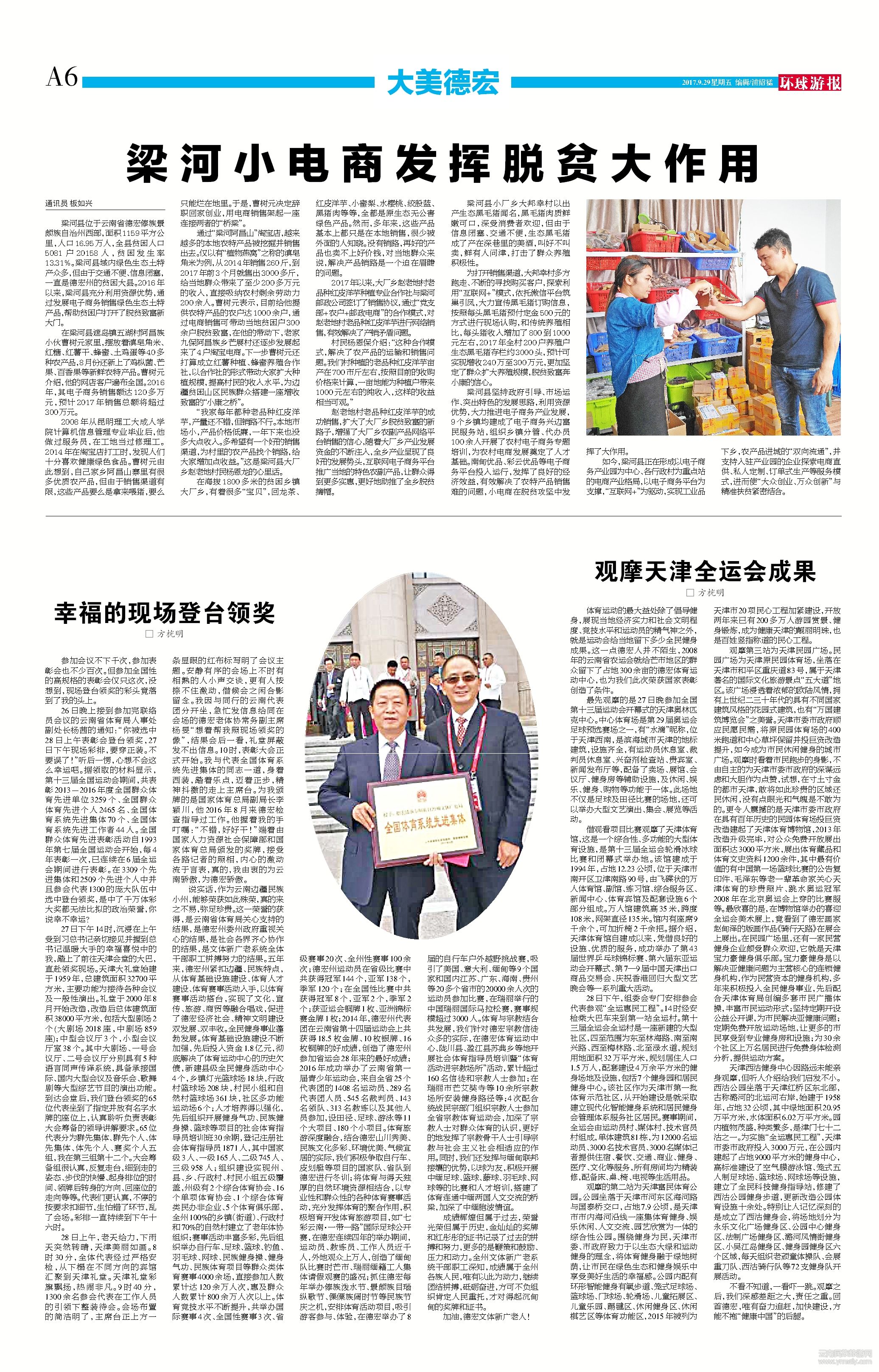 體育運動的最大益處除了倡導(dǎo)健身,展現(xiàn)當(dāng)?shù)亟?jīng)濟實力和社會文明程度、競技水平和運動員的精氣神之外,就是運動會給當(dāng)?shù)亓粝露嗌偃窠∩沓晒?。這一點德宏人并不陌生,2008年的云南省農(nóng)運會就給芒市地區(qū)的群眾留下了占地300余畝的德宏體育運動中心,也為我們此次榮獲國家表彰創(chuàng)造了條件。