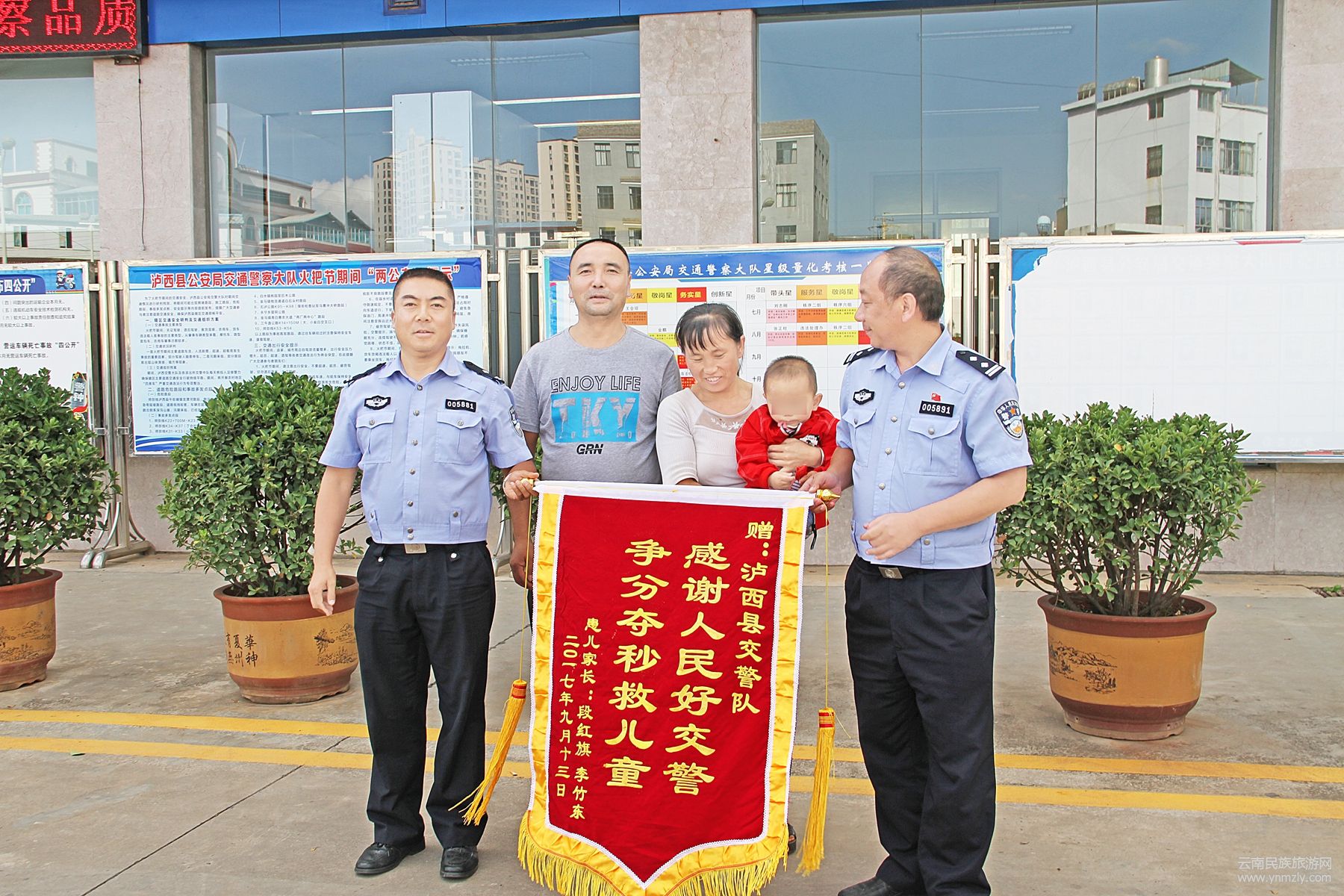 9月25日下午,瀘西縣段某將一面印有“感謝人民好交警,爭(zhēng)分奪秒救兒童”的錦旗送到瀘西縣公安局交警大隊(duì),表示對(duì)瀘西交警的感激之情。