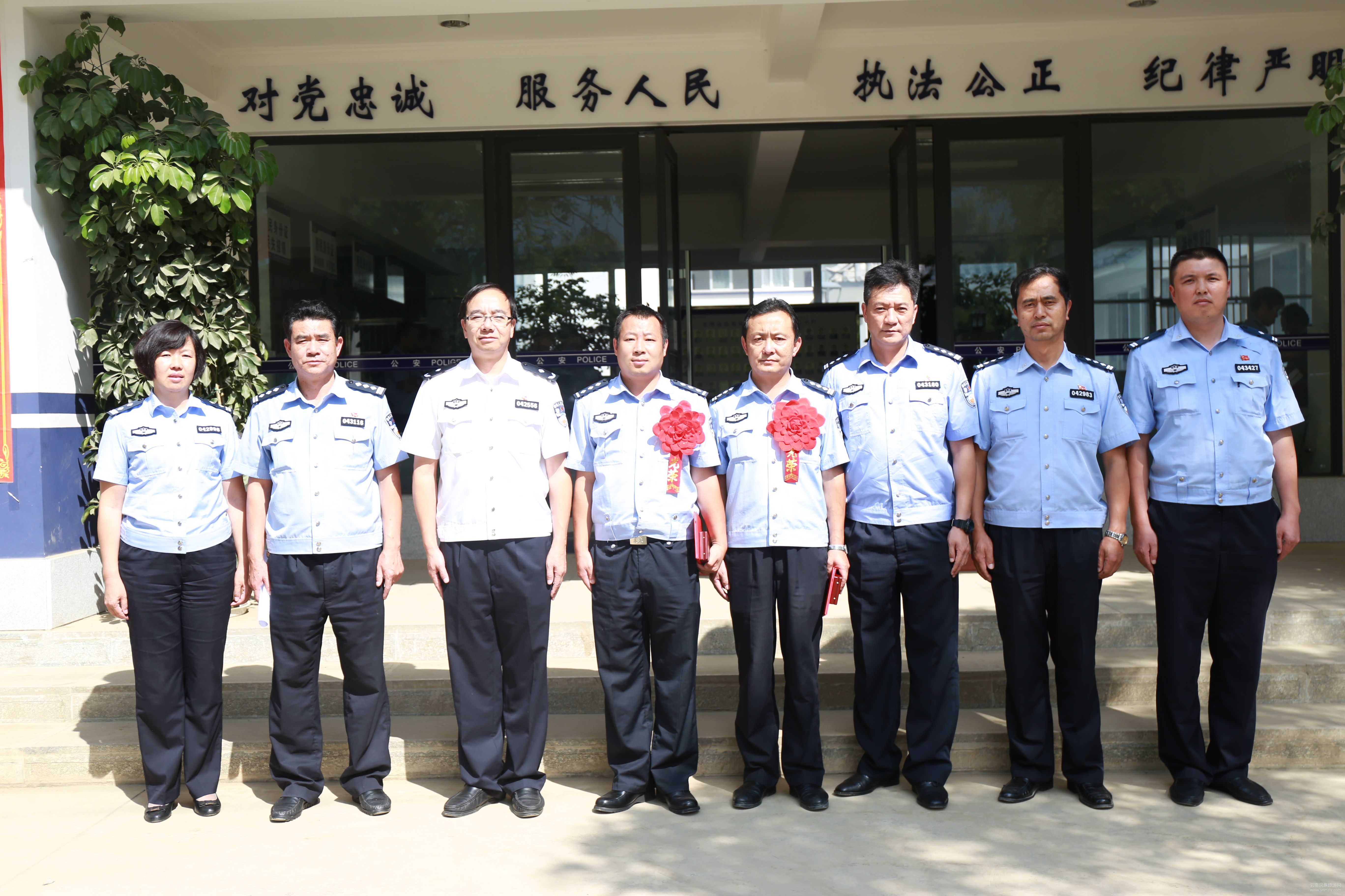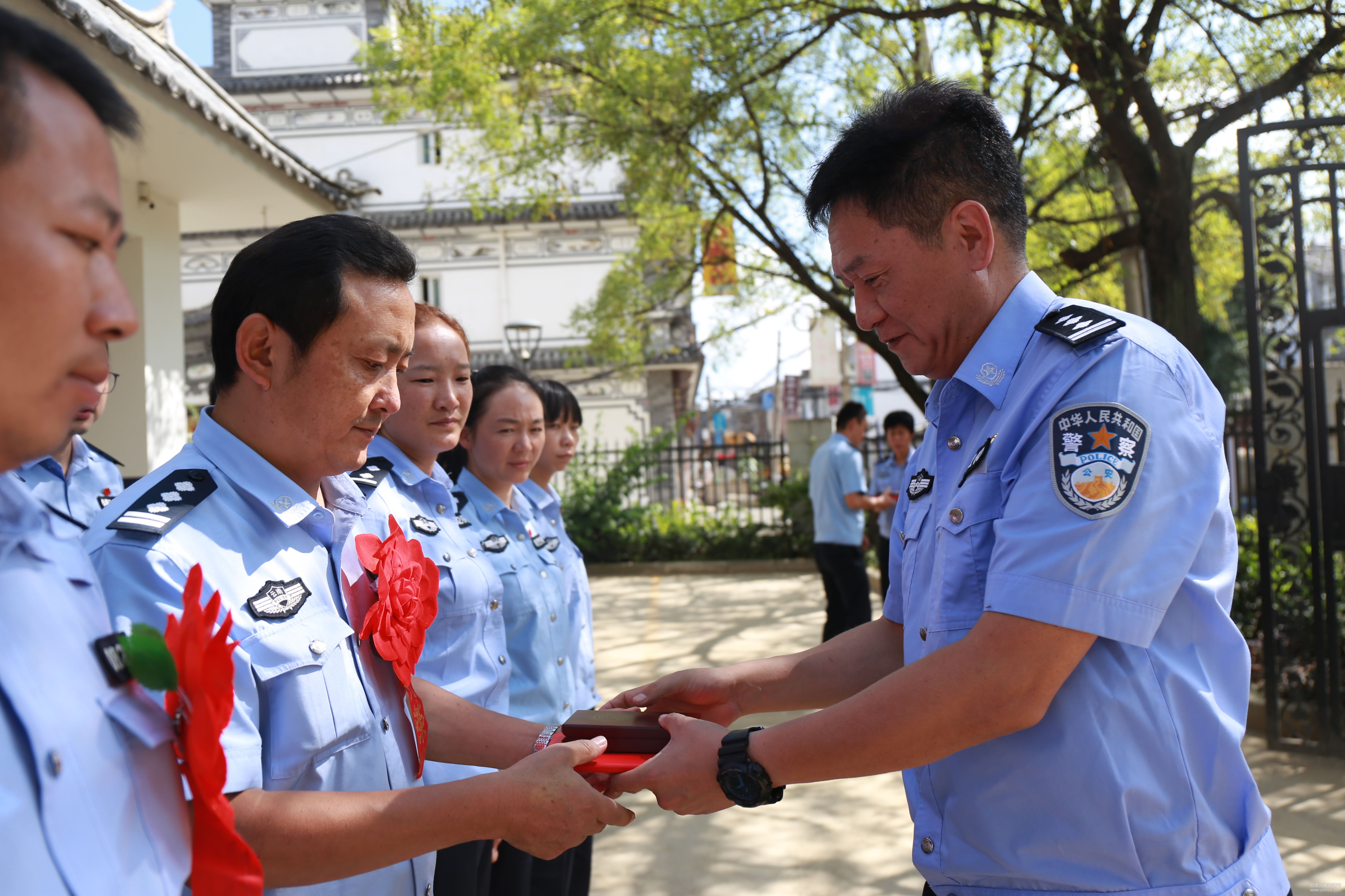 表彰儀式上,市公安局黨委副書記、政委楊榆端宣讀了大理州公安局《關(guān)于給予永平縣公安局博南派出所等4個集體和李何斌等16名同志記功的命令》,州公安局駐大理市十九大安保維穩(wěn)督導(dǎo)檢查組組長、州公安局國保支隊支隊長楊燕彬為立功人員佩戴獎?wù)虏㈩C發(fā)了證書,市公安局局長寶榮貴和部分局領(lǐng)導(dǎo)參加了表彰儀式。