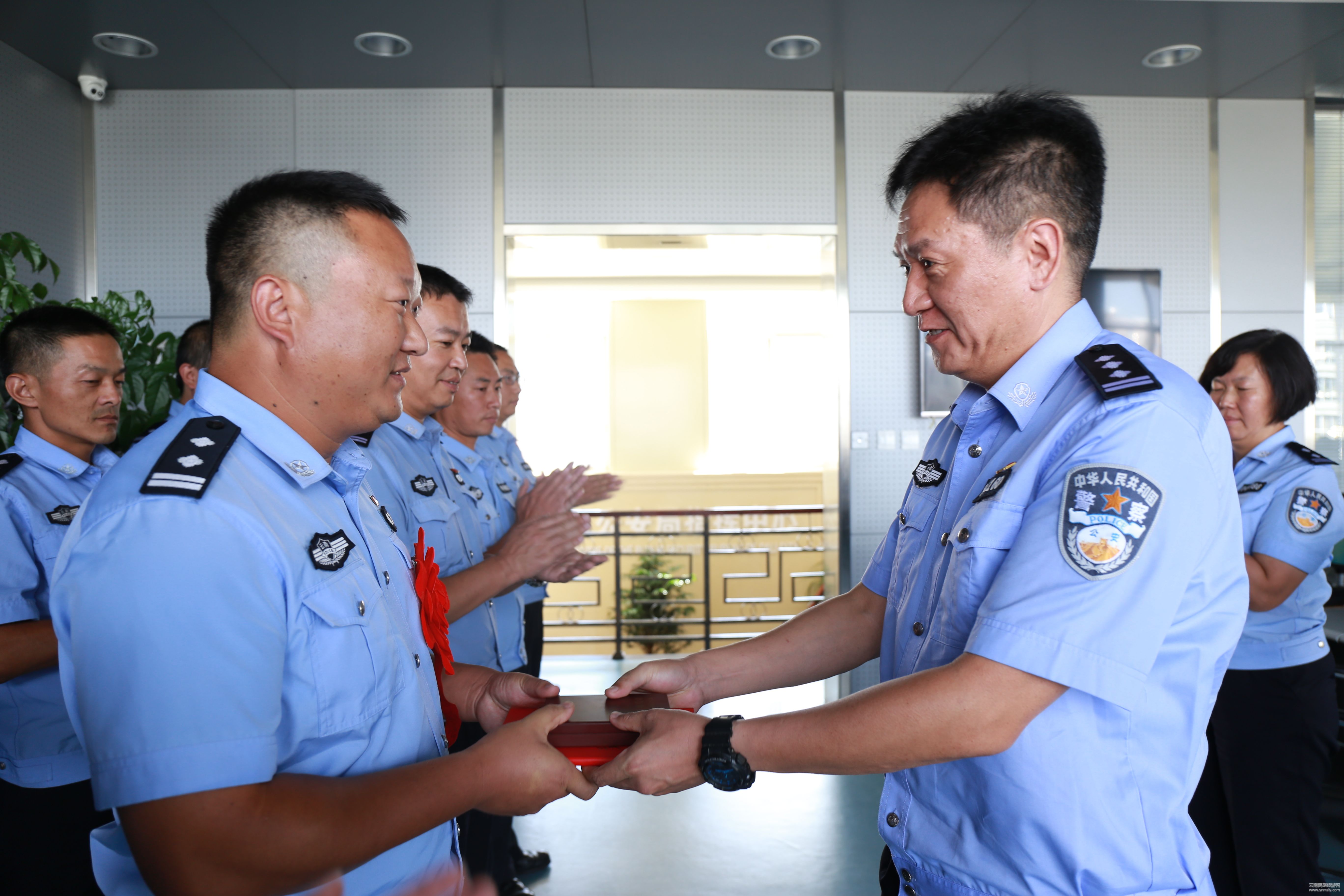 10月15日,市公安局改變以往表彰獎勵形式,由州公安局聯(lián)系市公安局的十九大安保維穩(wěn)督導(dǎo)組領(lǐng)導(dǎo)、市公安局領(lǐng)導(dǎo)組成,采取親臨一線部門進行戰(zhàn)時表彰的方法,先后深入到市公安局指揮中心、古城派出所對涌現(xiàn)出的3名榮立三等功民警進行及時表彰。