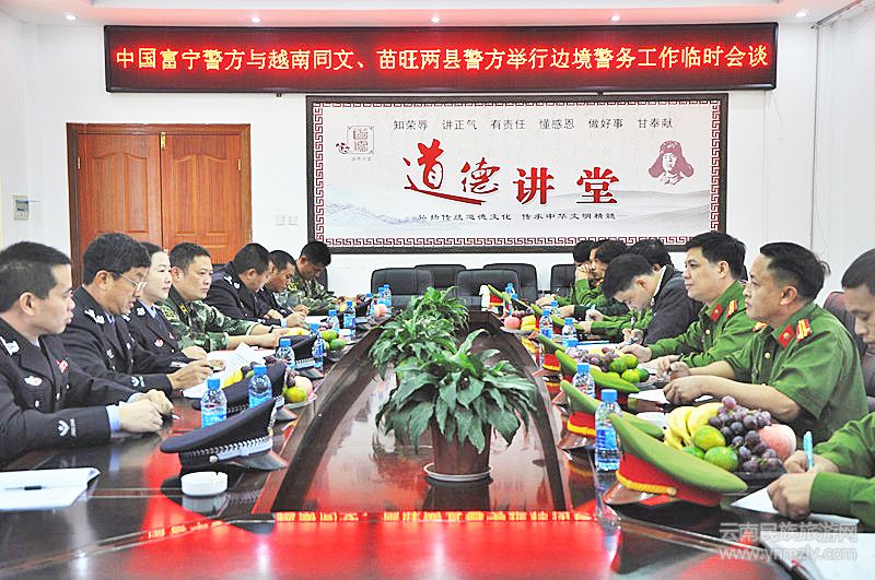 為堅決打贏十九大安保攻堅戰(zhàn),加強富寧縣邊境地區(qū)的管邊控邊力度,有效維護中越兩國邊境地區(qū)社會治安的和諧穩(wěn)定,更好的增強雙方警務合作。近日,應中國云南省富寧縣公安局的邀請,越南苗旺、同文兩縣公安代表團到富寧縣田蓬鎮(zhèn)人民政府舉行了臨時警務工作會談。