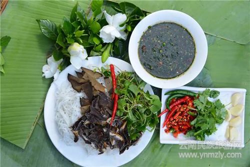 生要生得鮮嫩,因為傣族人居住的地區(qū)大多天氣炎熱,這也造成了傣家人喜食生菜的飲食習慣,包菜、生菜、胡蘿卜、黃瓜等配上傣家人自制的喃咪(蘸水),絕對是餐桌上最受歡迎的菜品之一。