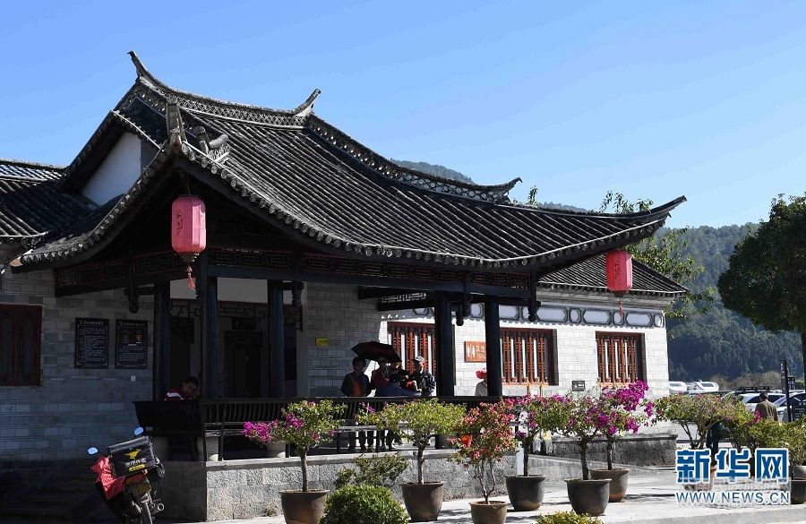 11月19日,游客在和順古鎮(zhèn)涼亭休息。