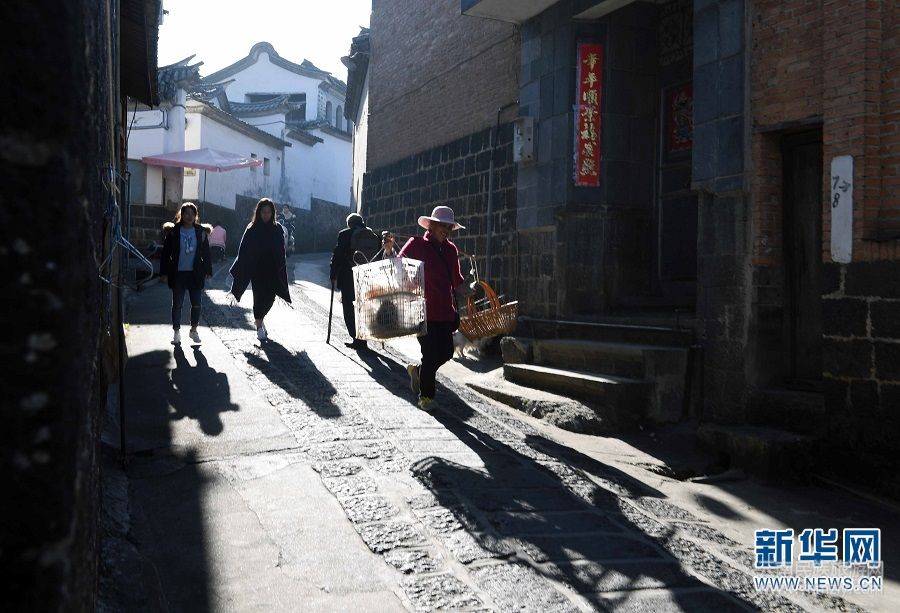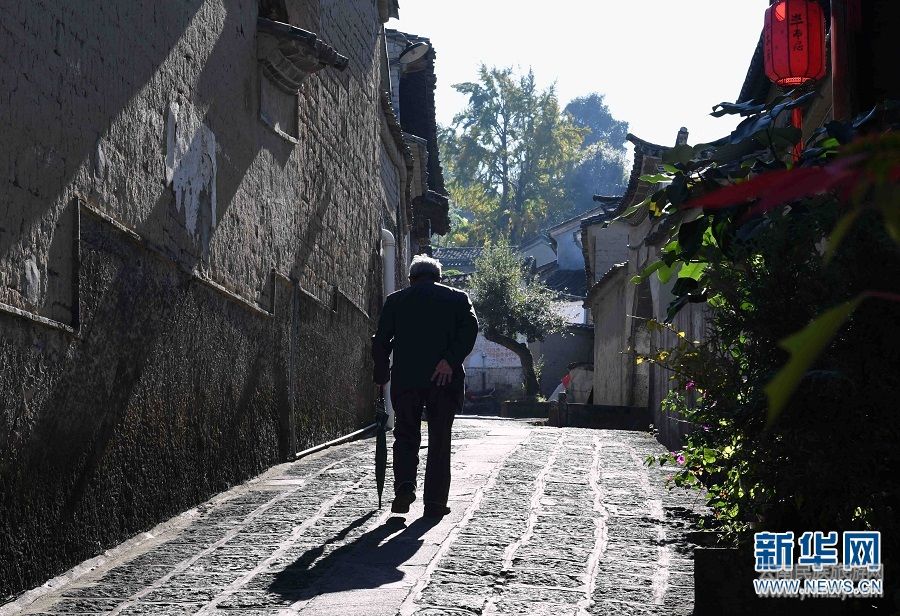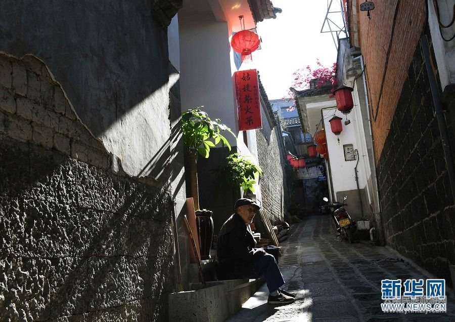 11月19日,一位老人在和順古鎮(zhèn)小巷休閑。