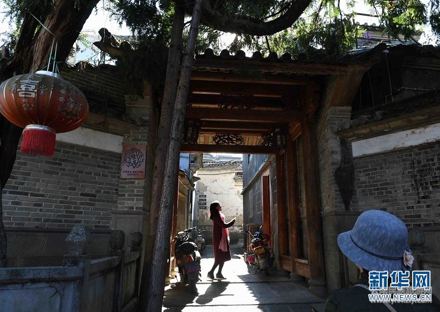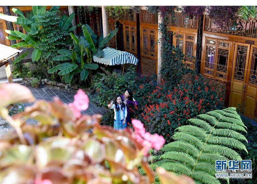 11月21日,游客在和順古鎮(zhèn)環(huán)境優(yōu)美的融商家客棧拍照。