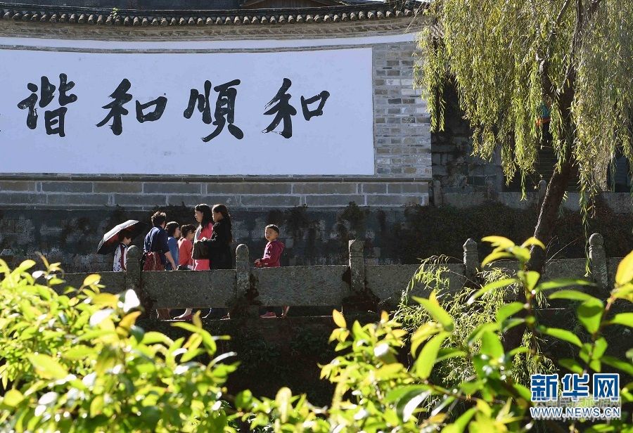 云南省騰沖市和順古鎮(zhèn)完整保留了中國(guó)明清漢族文化的特色,被譽(yù)為中國(guó)古代建筑的活化石。和順是一座歷史悠久始建于明朝的漢族古鎮(zhèn)。和順有傳統(tǒng)的小鎮(zhèn)建筑,淳樸的人們。這里沉淀著600多年的歷史文化,有著歷經(jīng)多少滄桑巨變的傳統(tǒng)民居。據(jù)了解,這里的傳統(tǒng)民居多達(dá)1000多座,其中清代民居有100多幢,被譽(yù)為中國(guó)古代建筑的活化石;其建筑風(fēng)格,有“三坊一照壁”、“四合院”、“四合五天井”等,在這里你可以領(lǐng)略到徽派建筑粉墻黛瓦的神韻,也可以尋覓到西方建筑的元素,尤其是那老宅的門窗木雕,各種雕刻造型栩栩如生。宅院中尤具地域特色的是以火山石堆砌的石階,遇到雨水天氣,能很好的起到了防滑作用。走進(jìn)和順古鎮(zhèn),展現(xiàn)在面前的是一派如詩(shī)如畫的風(fēng)光,山清水秀,垂柳拂案,綠影婆娑。 “遠(yuǎn)山茫蒼蒼,近水河悠揚(yáng),萬家坡坨下,絕勝小蘇杭。”——民國(guó)元老李根源先生曾在詩(shī)中如此贊賞和順。和順古鎮(zhèn)每天都吸引了眾多國(guó)內(nèi)外游客前來休閑觀光度假。新華社記者楊宗友攝影報(bào)道