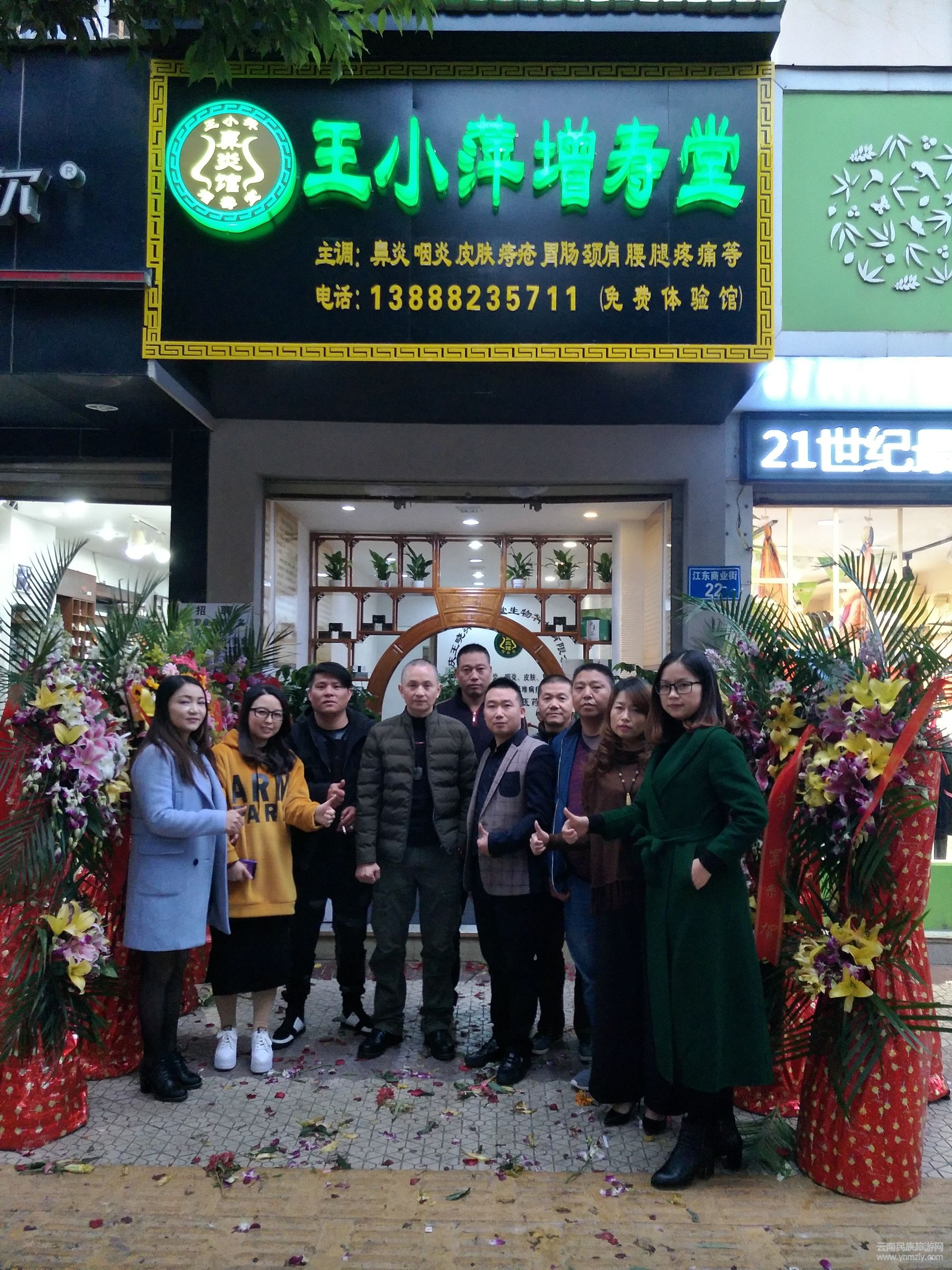 “凡鼻炎(鼻息肉、鼻甲肥大患者除外)及感冒人群均可到店調(diào)理痊愈為止,不收取任何費用。重度鼻炎、頸肩腰腿患者可簽約調(diào)理……”11月22日上午9:00,昆明市北辰中路江東商業(yè)街22號堂鋪的門前聚集了不少前來醫(yī)治的病患者和王氏中醫(yī)祖?zhèn)髅钏幍氖芤嬲摺2淮蟮奶娩亙?nèi),王小萍不停地回答著前來治療和咨詢加盟事宜的人們的問題。沒有了鞭炮的炸響聲,只有門前擺放的花籃,才讓人感到今天這里又多了一個新的堂號。簡約、隨和、不張揚是王小萍增壽堂一貫的作風(fēng)。簡樸的開業(yè)儀式后,王小萍增壽堂昆明分店正式造福春城患者。