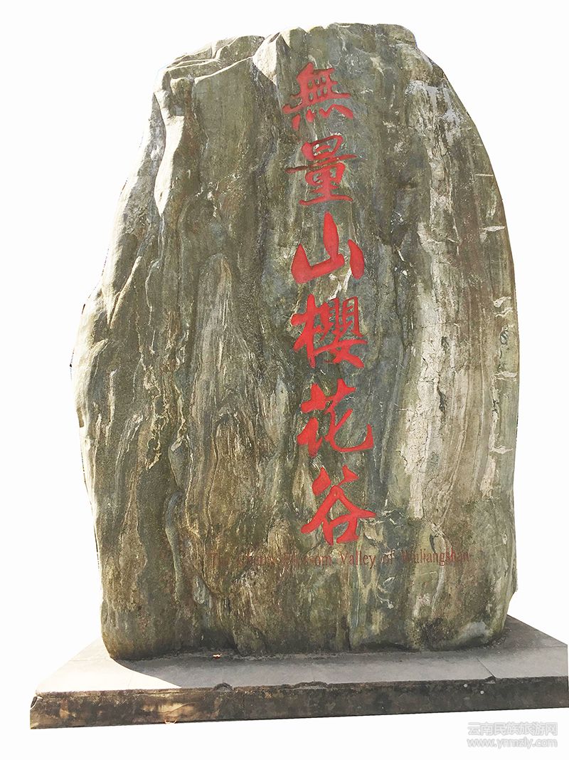 一個多小時后,當漫山遍野的櫻花樹帶著春天的氣息,闖入眼簾時,櫻花谷到了。山丫口處,一塊約五米高的大石頭,寫著“無量山櫻花谷”幾個紅色的大字。