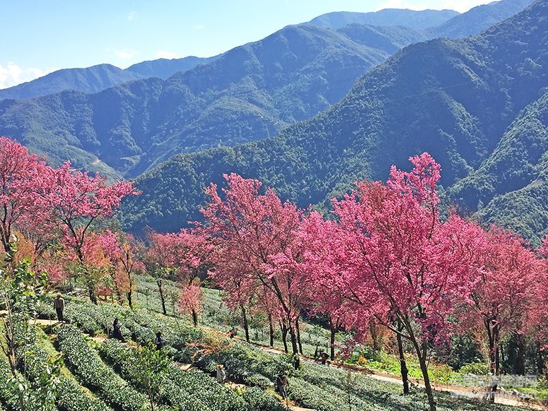 每年12月,這里的冬櫻就似乎是一夜之間現(xiàn)世的神跡,開得恣意,開得歡騰,如難得一見的繁英絢爛,就在這個冬天自由盛放。蒼翠茶園相伴,幽幽山谷相守,此處正是最孤芳自賞的美好地方。若遇晨霧繚繞,只在迷蒙微光間泄露那紅粉的嬌俏,就像是欲出仍遮面的少女。來自全國各地的數(shù)萬游客,踏著冬的腳步,步入這個春的世界里。一團團的粉,一團團的紅,嫩嫩的,柔柔的櫻花散落在一片碧綠的葉浪里,微風過處,片片櫻花瓣飄落,好似在藍天下沐一場櫻花雨。