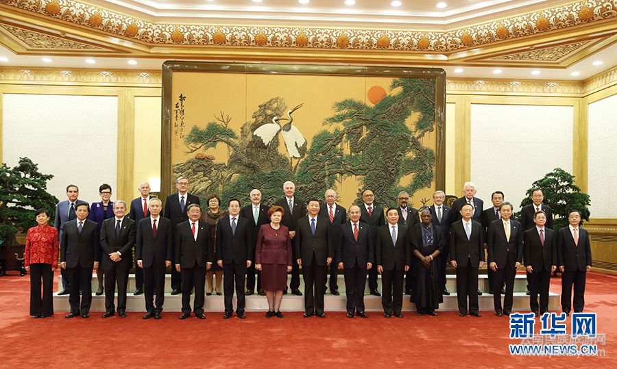 會(huì)見前,習(xí)近平同外方嘉賓一一握手,并集體合影。