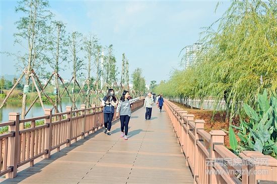 圖為異龍湖濕地建成部分吸引眾多游客前來,生態(tài)、社會(huì)效益初顯。(記者 岳曉瓊 攝影報(bào)道)