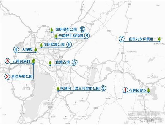 根據(jù)高德導(dǎo)航提供數(shù)據(jù),全市主要風(fēng)景區(qū)自駕導(dǎo)航熱門的景點(diǎn)依次有:石林風(fēng)景區(qū)、滇池海埂公園、云南民族村、大觀樓、官渡古鎮(zhèn)、昆明翠湖公園、宜良九鄉(xiāng)風(fēng)景區(qū)、云南野生動(dòng)物園、撈漁河·梁王河濕地公園、昆明瀑布公園。