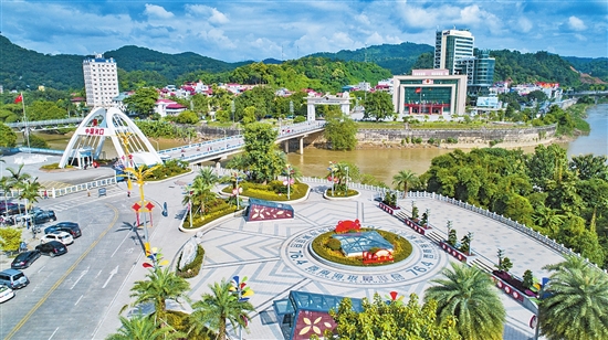 這是河口最平常的截面:在紅河與南溪河的交匯口,“中國(guó)河口”口岸,繁忙的貿(mào)易往來(lái),一個(gè)個(gè)推著推車(chē)、匆匆而過(guò)的身影,讓人印象深刻;在國(guó)門(mén)旁,一張碩大的銅質(zhì)中國(guó)地圖鋪展在地面上,無(wú)論游客來(lái)自哪里,都可以找到“故鄉(xiāng)”;在地標(biāo)點(diǎn)花壇,五顏六色的盆栽圍繞著“西南海拔最低點(diǎn)76.4米”的圓形標(biāo)志,展現(xiàn)著河口在西南地區(qū)之“最”的地位;社會(huì)主義核心價(jià)值觀主題公園,構(gòu)筑起市民和游客共同的精神家園;在濱江路,中國(guó)結(jié)、扇子、窗花等中國(guó)元素的裝飾,讓民族傳統(tǒng)文化歷久彌新,增強(qiáng)了國(guó)際合作的親和力。