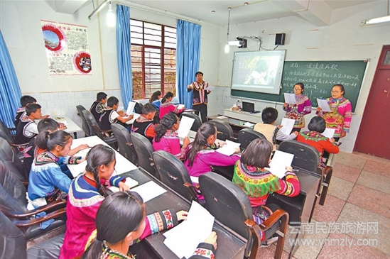 “為弘揚(yáng)少數(shù)民族傳統(tǒng)文化,學(xué)校開(kāi)設(shè)了少數(shù)民族文化教育課堂,積極傳承民族文化。分別開(kāi)設(shè)彝族、傈僳族、苗族、傣族4種少數(shù)民族文化教育課,課程內(nèi)容包含語(yǔ)言、文字、藝術(shù)、民俗等。”副校長(zhǎng)張明昆說(shuō),“現(xiàn)在已經(jīng)形成了我們學(xué)校少數(shù)民族教育特色。”