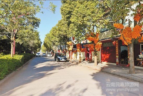 冬日的姚安縣光祿鎮(zhèn)草海彝村,清澈的小河“貼”著村子流過(guò),平整潔凈的水泥路旁,一排排二層小樓錯(cuò)落有致,房前屋后綠蔭繁盛,村民們悠閑地曬著太陽(yáng),一派靜謐閑適的田園景象。
