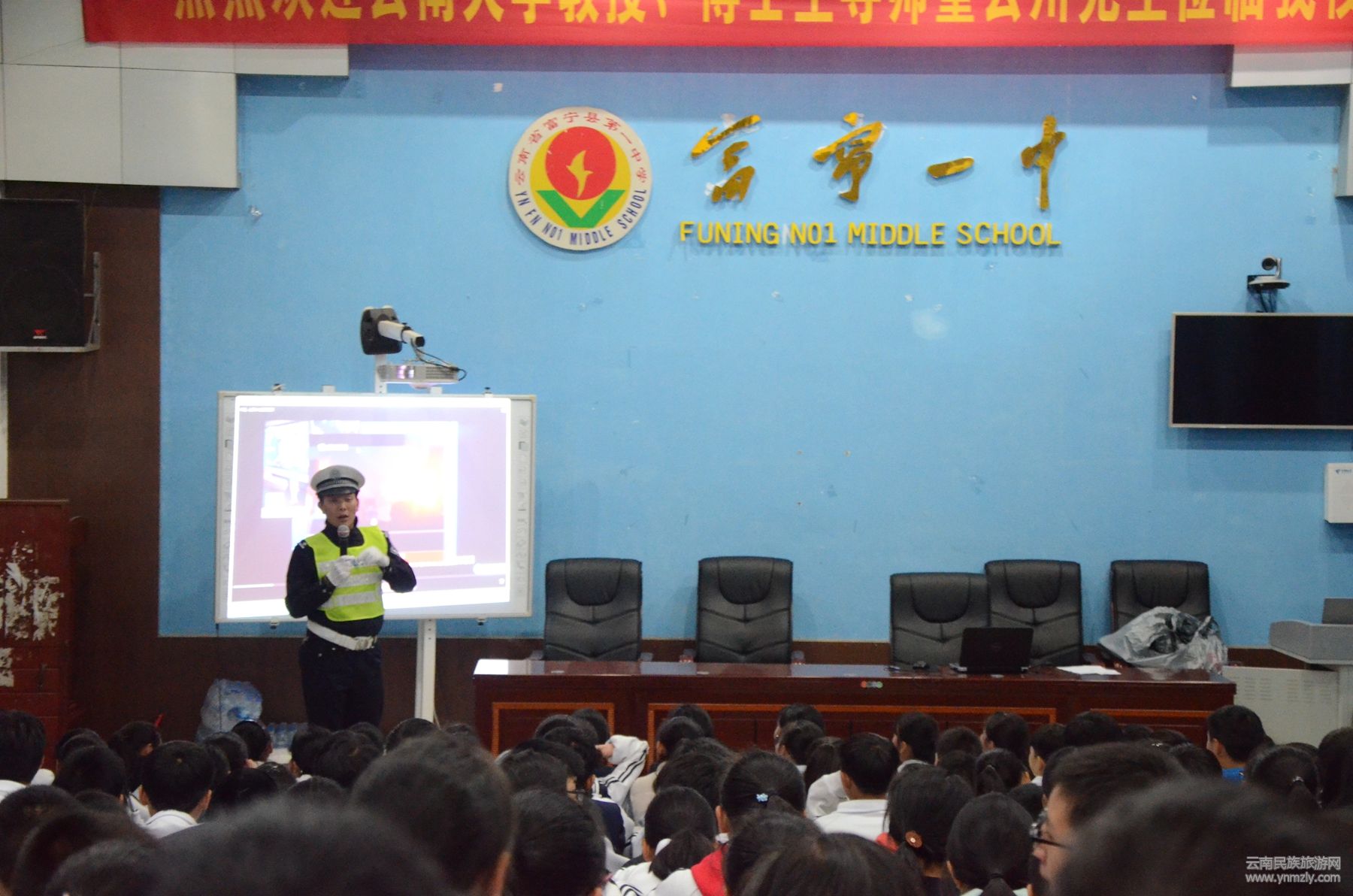 在今年第六個(gè)122全國(guó)交通安全宣傳日”到來(lái)之際,12月1日晚,富寧縣公安局交警大隊(duì)派出宣傳民警深入轄區(qū)縣一中開展以“尊重生命,從敬畏和遵守法律開始”為主題的交通安全宣傳講座。