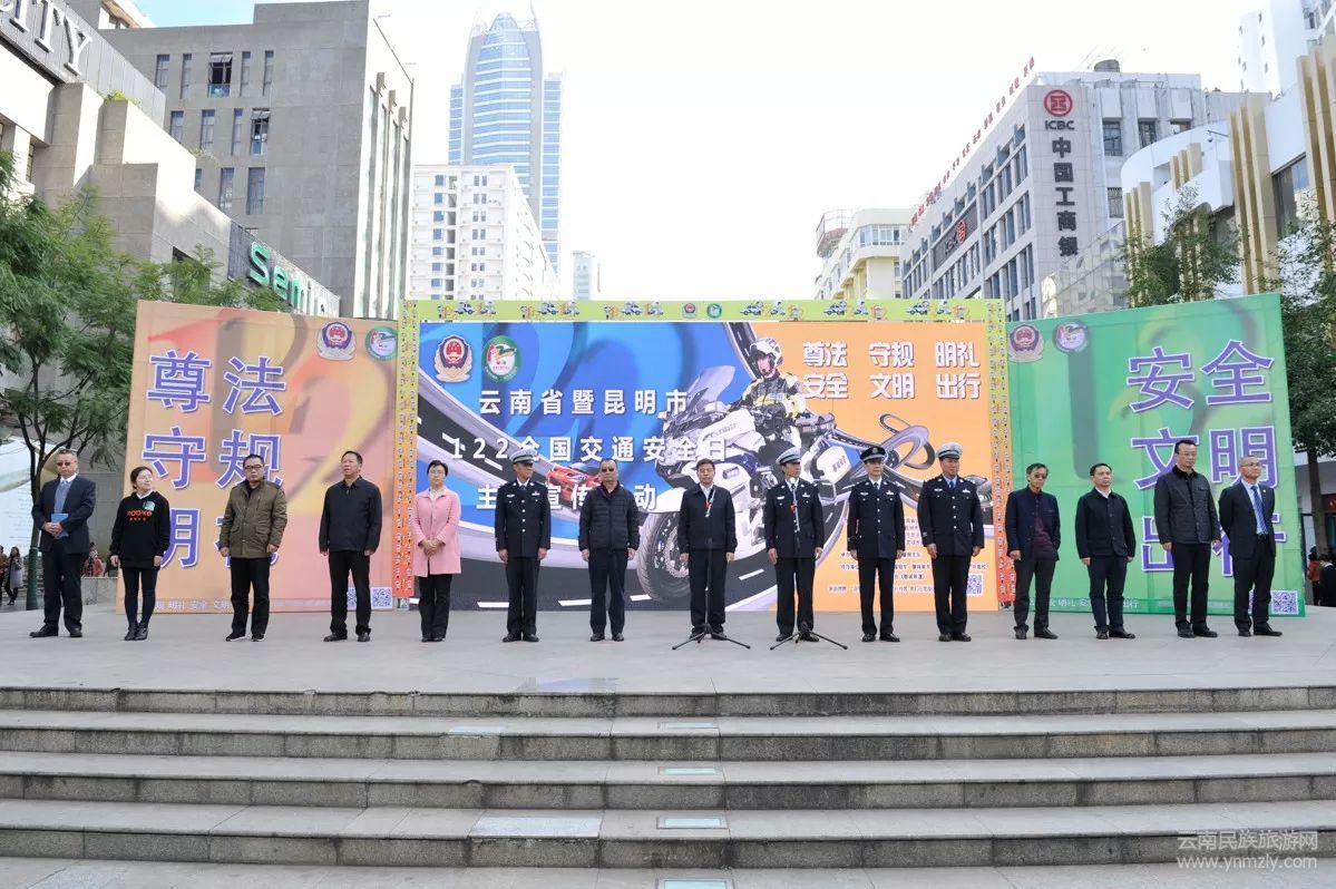 當(dāng)天上午,由昆明市人民政府、云南省公安廳交通警察總隊(duì)、昆明市文明辦、中共昆明市委網(wǎng)信辦、昆明市公安局、昆明市教育局、昆明市司法局、昆明市交通運(yùn)輸局、昆明市安全生產(chǎn)監(jiān)督管理局共同主辦的“云南省暨昆明市122全國(guó)交通安全日主題活動(dòng)”啟動(dòng)儀式在昆明市南屏步行街廣場(chǎng)舉行。云南省公安廳黨委委員、昆明市副市長(zhǎng)、市公安局局長(zhǎng)周建忠,云南省公安廳交警總隊(duì)政委徐志勇等領(lǐng)導(dǎo)以及各界代表和媒體記者近300人參加了活動(dòng)。