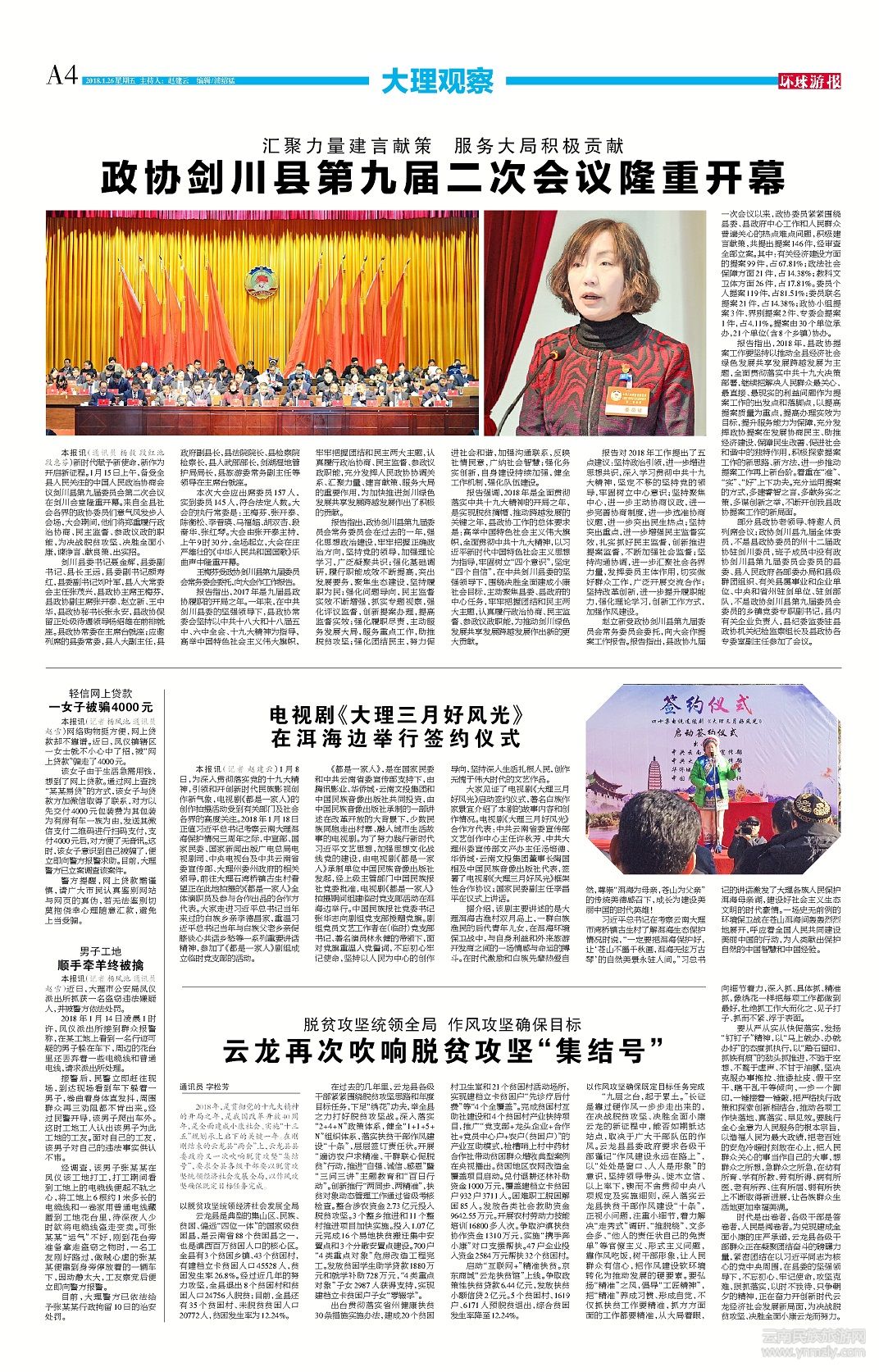 時(shí)代是出卷者,各級(jí)干部是答卷者,人民是閱卷者。為兌現(xiàn)建成全面小康的莊嚴(yán)承諾,云龍縣各級(jí)干部群眾正在凝聚團(tuán)結(jié)奮斗的磅礴力量,緊密團(tuán)結(jié)在以習(xí)近平同志為核心的黨中央周圍,在縣委的堅(jiān)強(qiáng)領(lǐng)導(dǎo)下,不忘初心、牢記使命,攻堅(jiān)克難、狠抓落實(shí),以時(shí)不我待、只爭(zhēng)朝夕的精神,正在奮力開創(chuàng)新時(shí)代云龍經(jīng)濟(jì)社會(huì)發(fā)展新局面,為決戰(zhàn)脫貧攻堅(jiān)、決勝全面小康云龍而努力。通訊員 字松芳 (文章來源環(huán)球游報(bào)2018年1月26日第1126期A4版)
